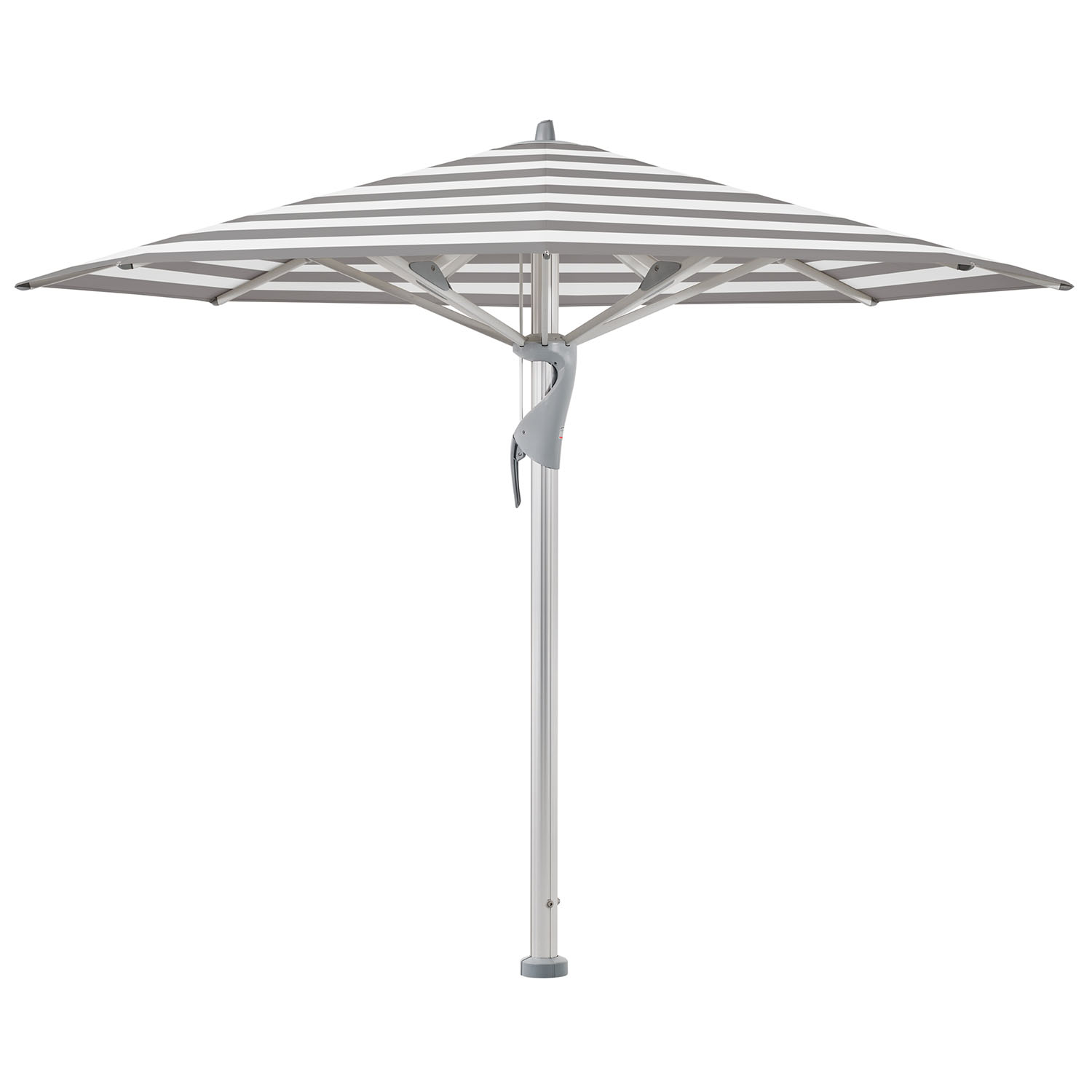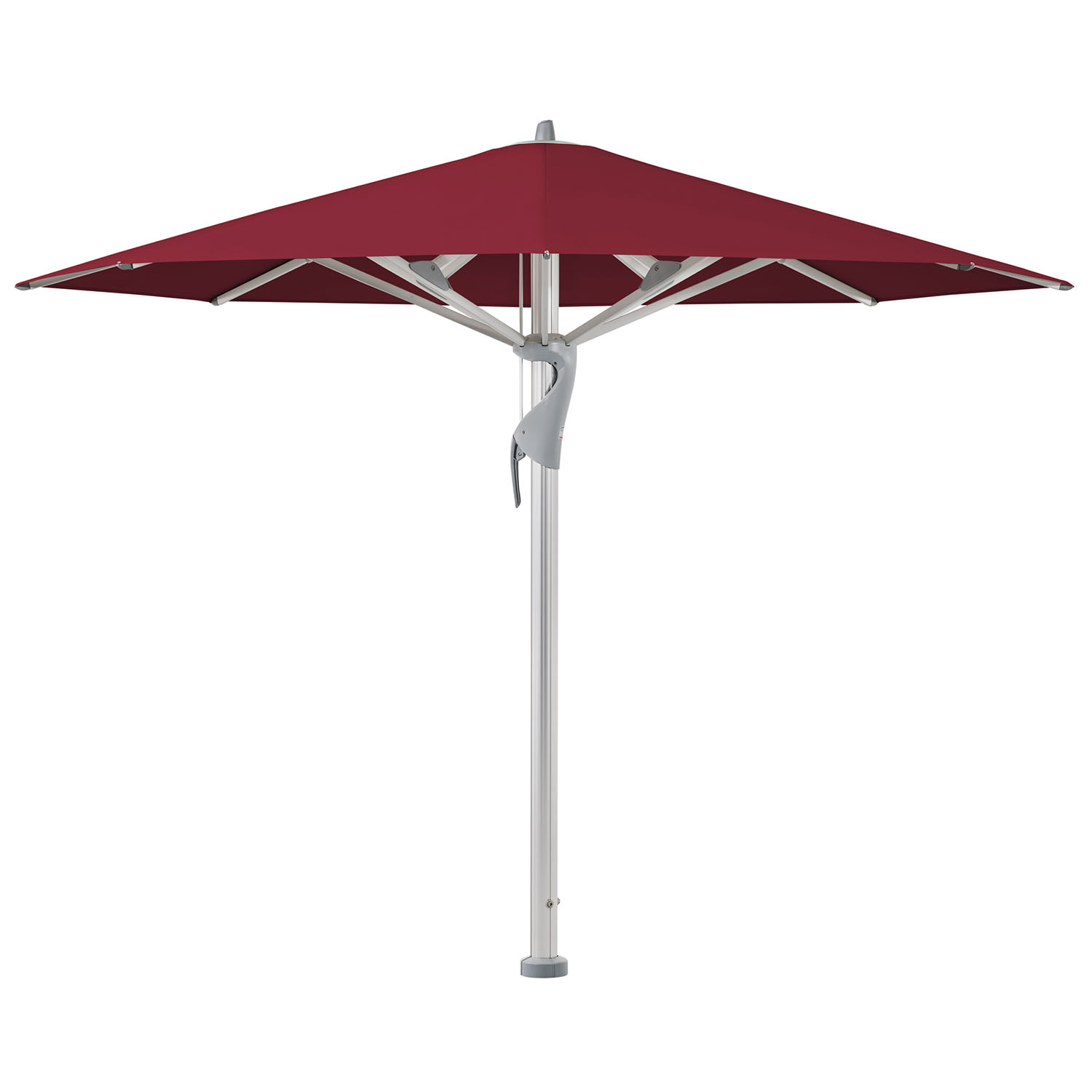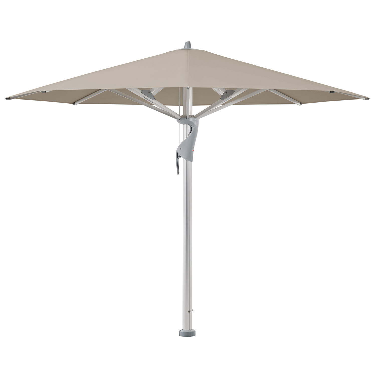 De Castello®® pro van Glatz heeft een robuust en stijlvol ontwerp dat uitermate geschikt is voor grote terrassen. Het frame van de parasol is gemaakt van geanodiseerd aluminium of poedergecoat parasolframe in zijdemat antraciet RAL 7016 met een wanddikte van maar liefst 3,2mm. Samen met het mastprofiel van 90mm en baleinen van 33x20mm vormen dit de basis voor deze solide parasol. Mede hierdoor is de parasol in combinatie met een bodemverankering bestand tegen windsnelheden tot windkracht 10 afhankelijk van het formaat. De parasol kan gemakkelijk geopend en gesloten worden middels de schuif met afsluitbare spanhendel. Bovendien zorgt het telescoopsysteem ervoor dat de parasol boven de tafel sluit.