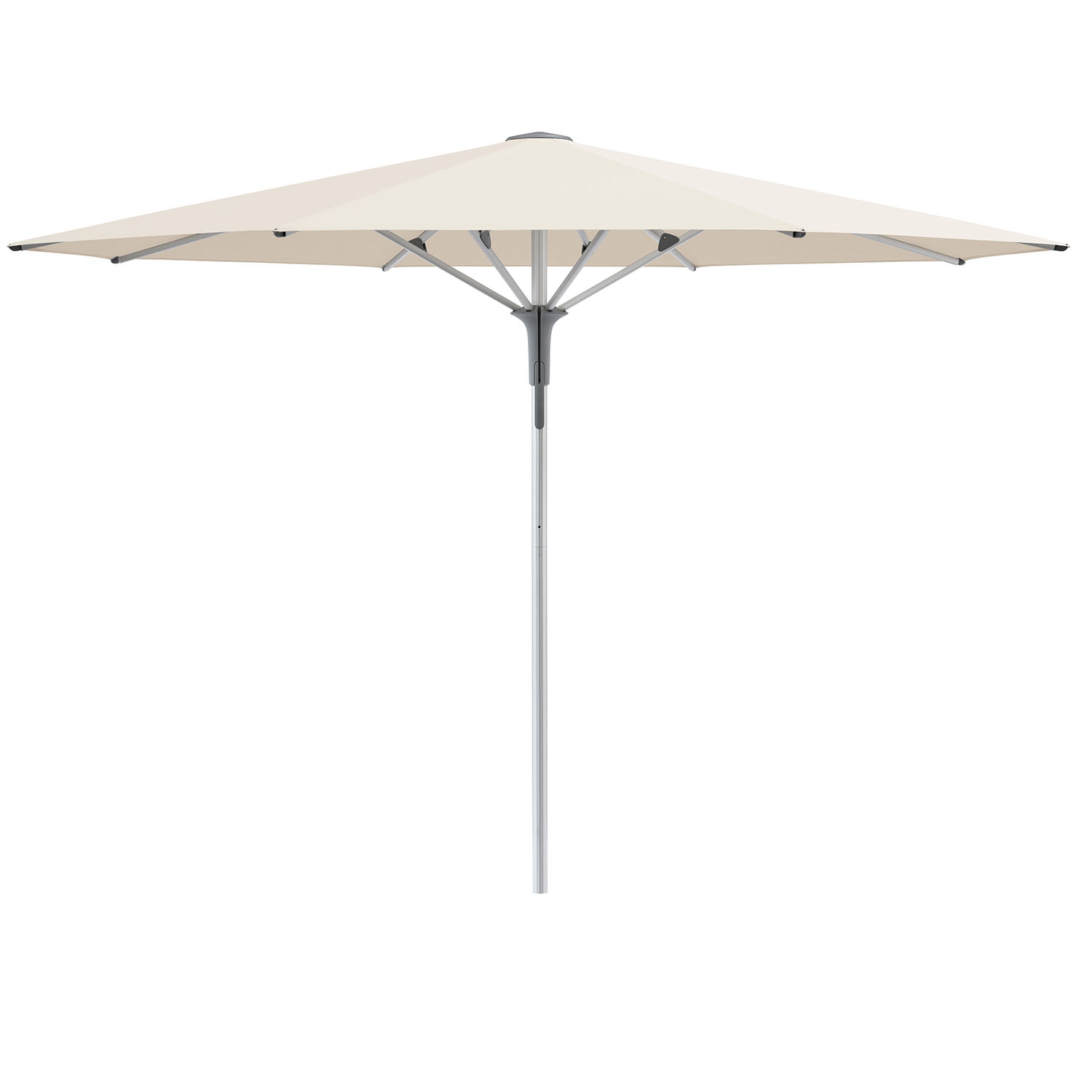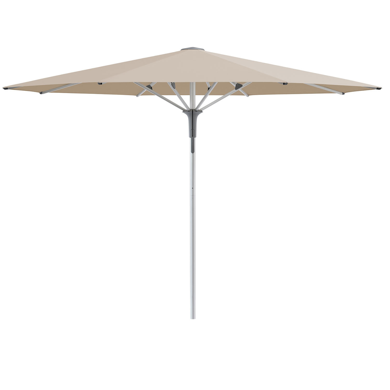 Over het algemeen geldt: hoe dikker de stok, des te steviger de parasol. Tip: denk bij de keuze voor een geschikte parasolvoet ook aan de diameter van de parasolstok. De buis van de parasolvoet moet een gelijke of grotere diameter hebben, dan de diameter van de parasolstok, anders past de parasol niet in de voet. Op de website vindt u bij iedere parasol een kopje aanbevolen accessoires, met daaronder ook een aantal parasolvoeten die altijd passend zijn.