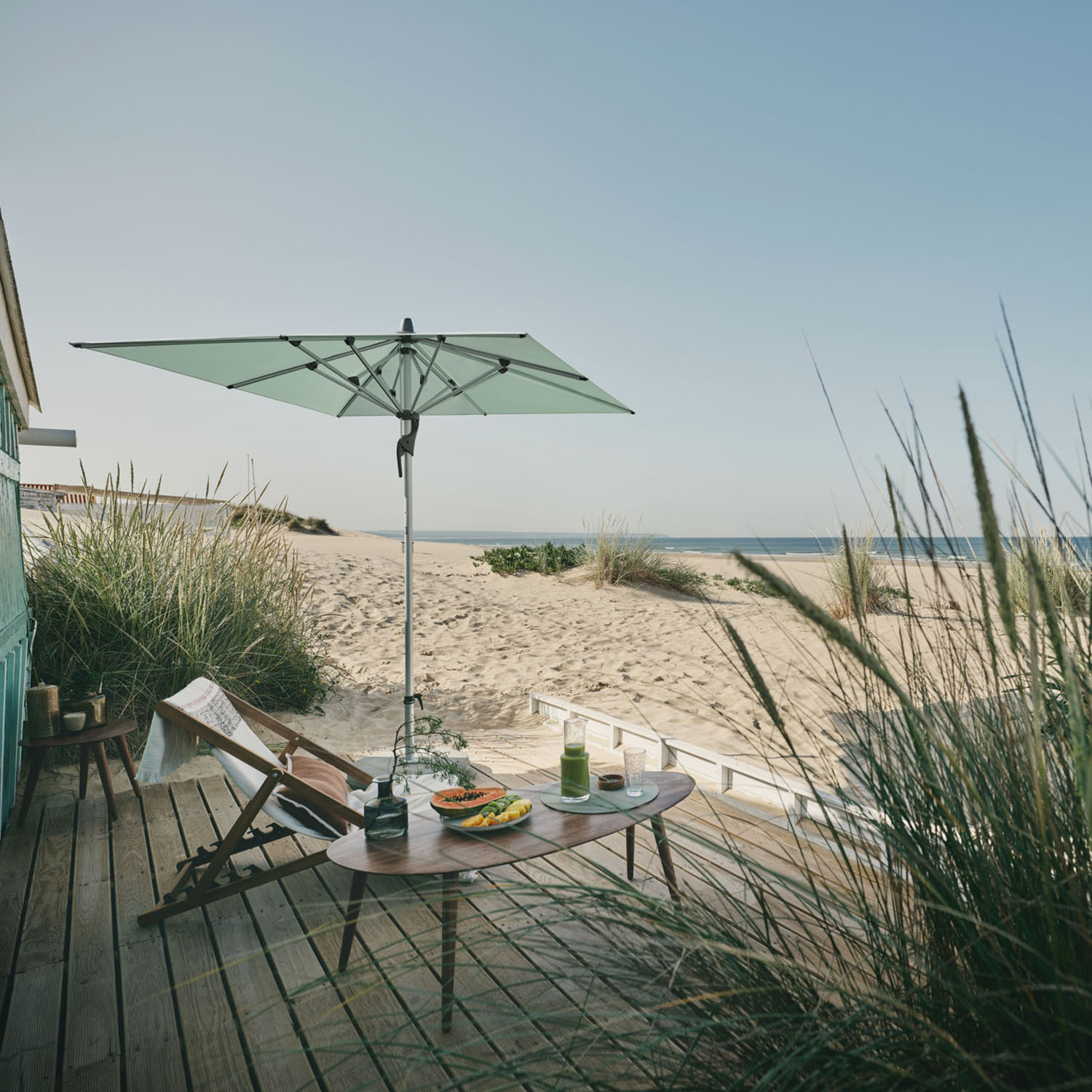 Is opslag geen probleem? Kies dan voor een parasol met een doorlopende paal. Dit is over het algemeen steviger en stabieler dan een paal uit twee delen.