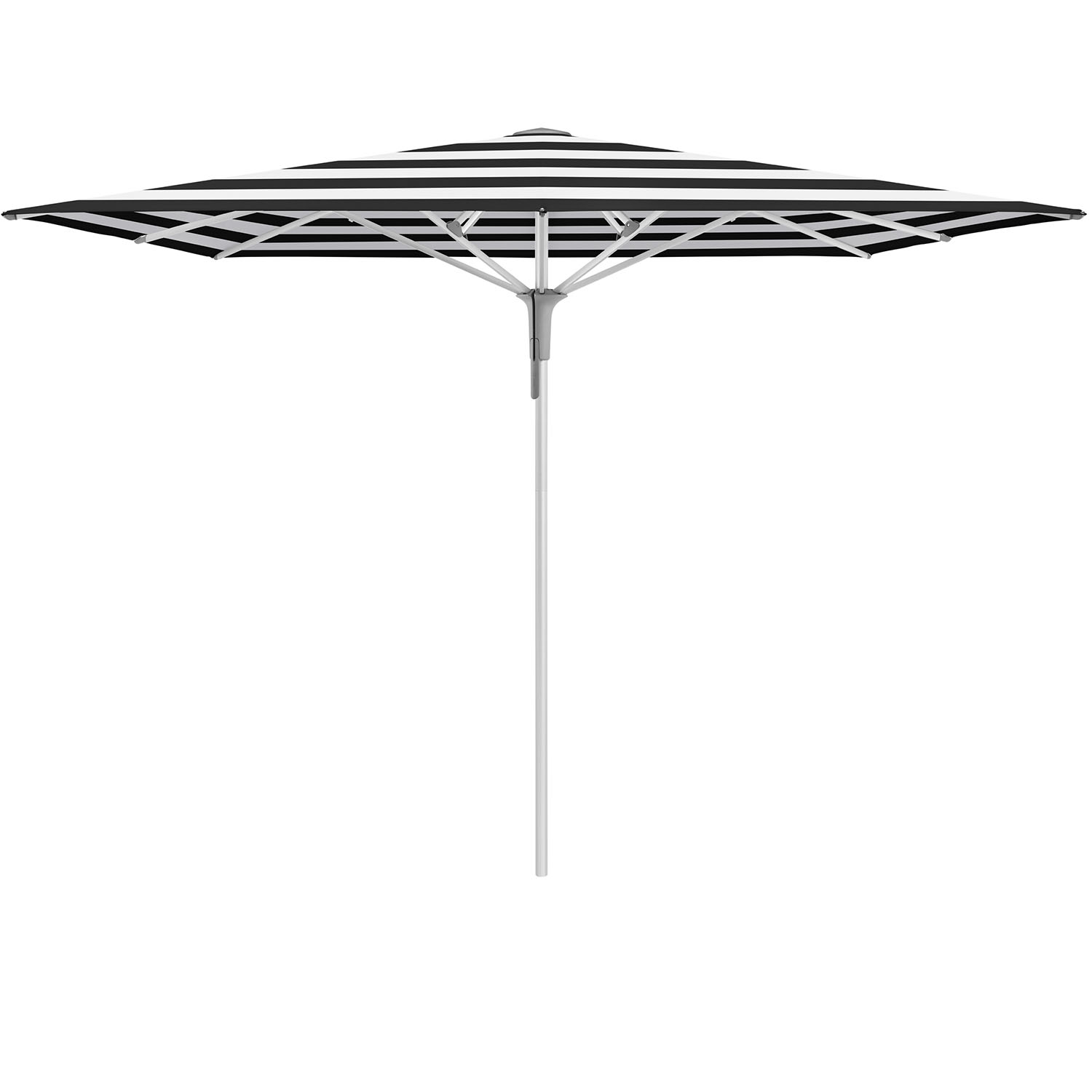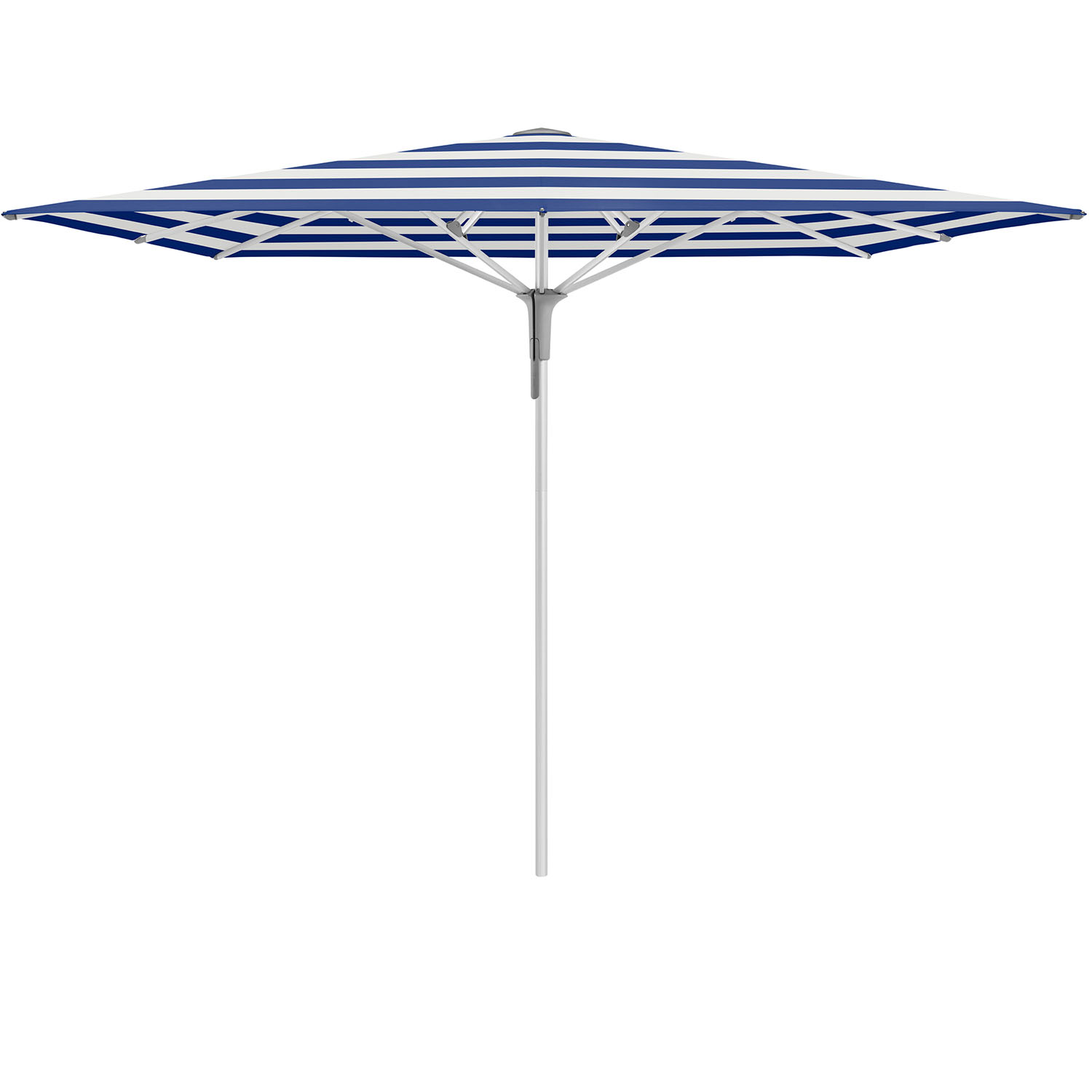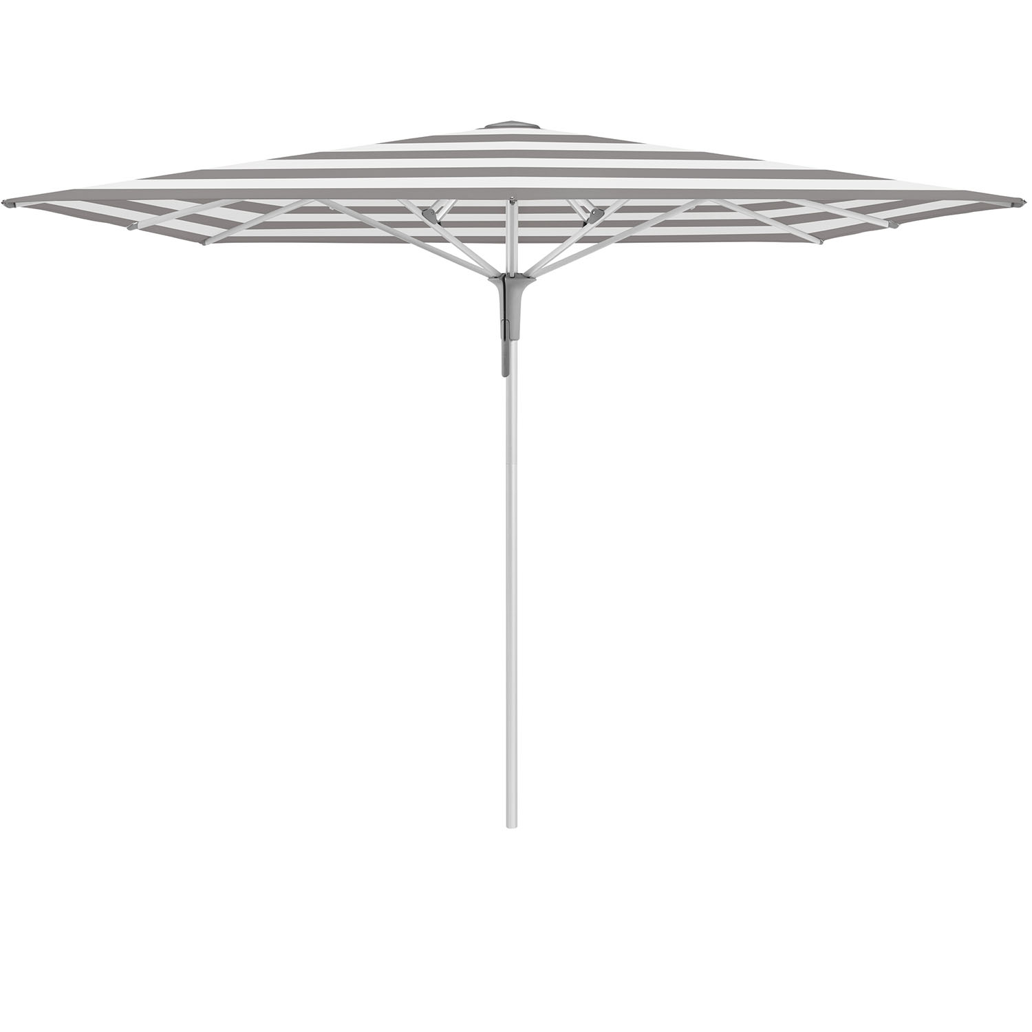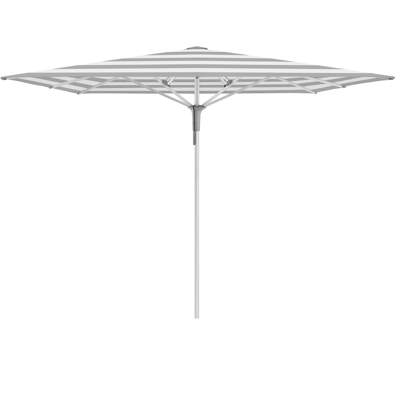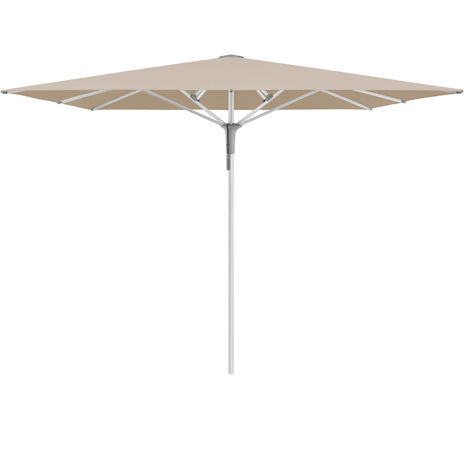 Over het algemeen geldt: hoe dikker de stok, des te steviger de parasol. Tip: denk bij de keuze voor een geschikte parasolvoet ook aan de diameter van de parasolstok. De buis van de parasolvoet moet een gelijke of grotere diameter hebben, dan de diameter van de parasolstok, anders past de parasol niet in de voet. Op de website vindt u bij iedere parasol een kopje aanbevolen accessoires, met daaronder ook een aantal parasolvoeten die altijd passend zijn.