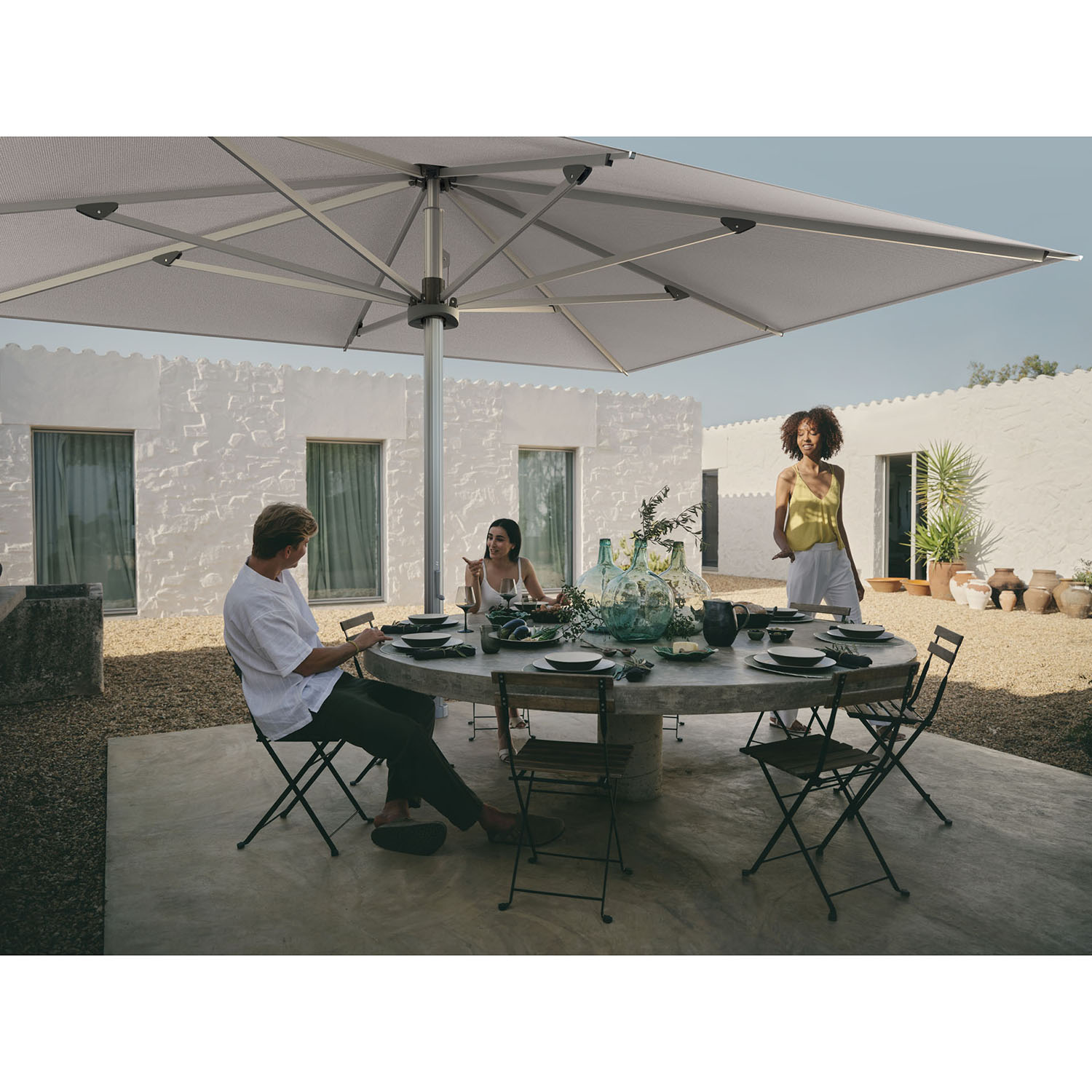 De Palazzo® Noblesse is verkrijgbaar in diverse formaten, variërend van Ø 400 cm rond tot 600 × 600 cm vierkant. Zo kies je altijd een passend model voor jouw terrasindeling.