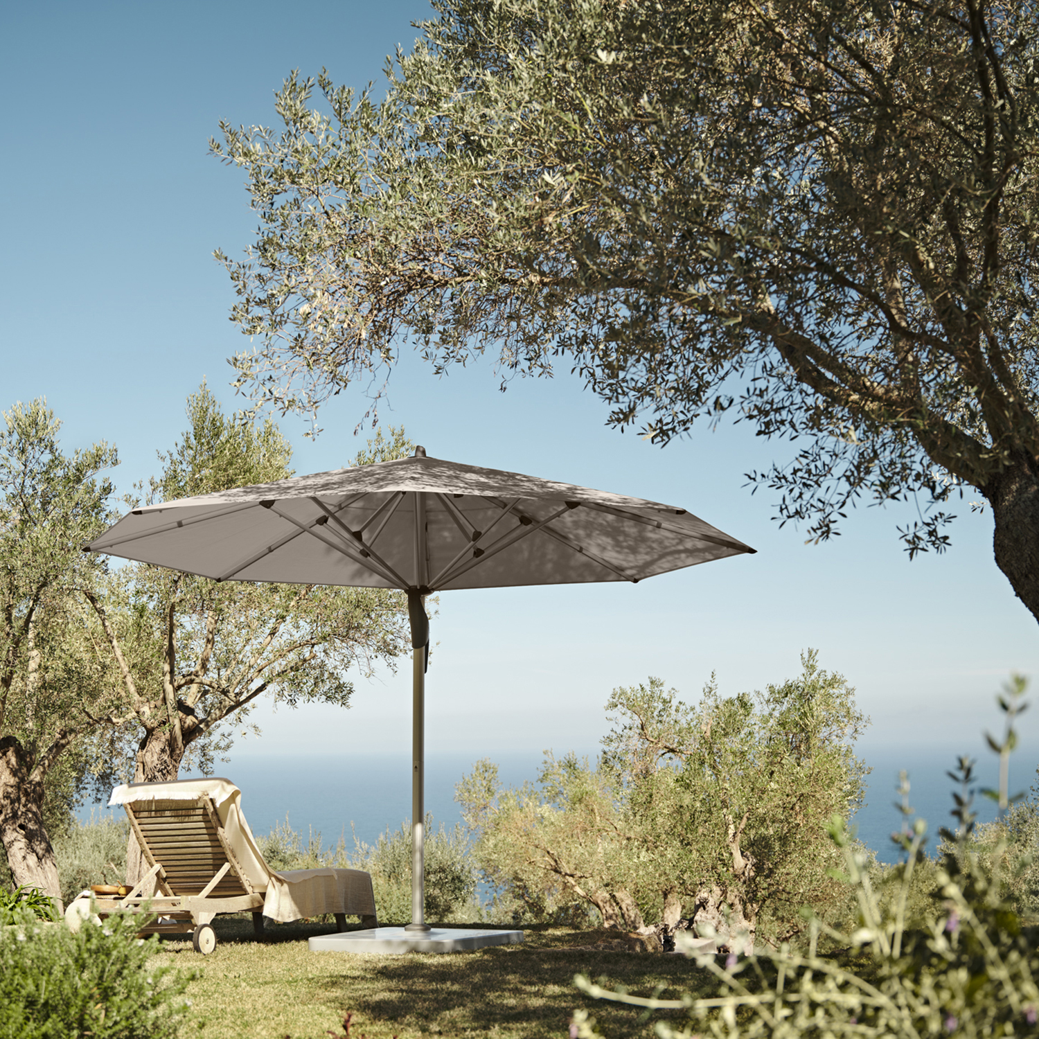 Een parasol die kan kantelen geeft extra schaduw. Soms kan de kantelfucntie van een parasol ook gebruikt worden om extra privacy in de tuin te creëren.