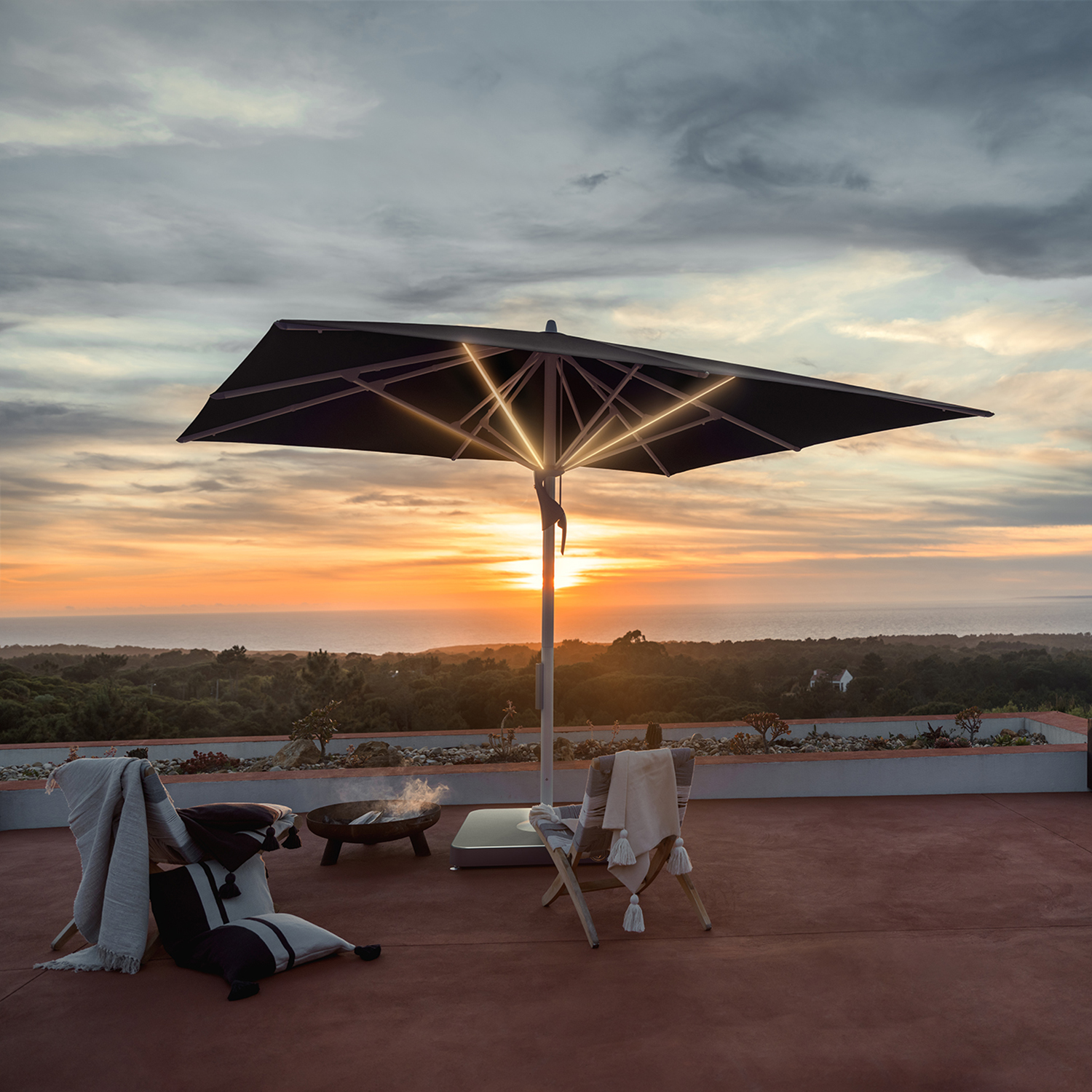 Een parasol die kan kantelen geeft extra schaduw. Soms kan de kantelfucntie van een parasol ook gebruikt worden om extra privacy in de tuin te creëren.
