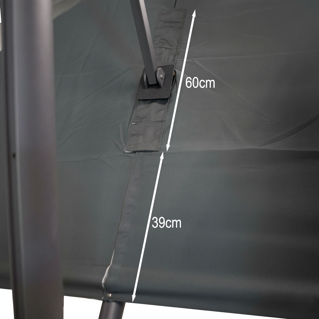 Met de afmeting wordt de afmeting van de parasolkap in geopende stand bedoeld