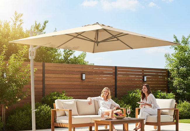 De plek waar een parasol staat kan veel invloed hebben op de levensduur van het parasoldoek. Een parasol in een bosrijke omgeving, onder een boom met veel vogels of op een plek met veel harde wind heeft het zwaarder te verduren dan een parasol die in een tuin zonder bomen staat.