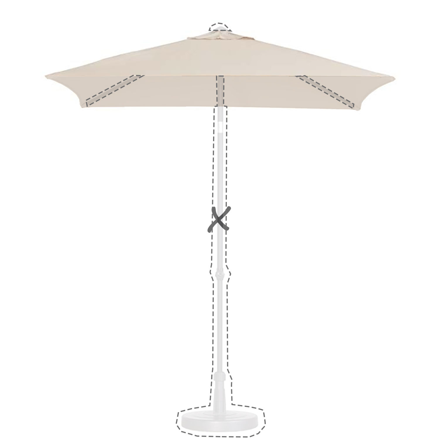 Bij vierkante en rechthoekige parasols wordt de afmeting opgegeven in lengte x breedte. Bij ronde parasols wordt de diameter (doorsnede) van de parasolkap als afmeting opgegeven. De diameter is de afstand tussen twee tegenoverliggende baleineindes. Alle opgegeven maten zijn gecalculeerde en afgeronde maten. In de praktijk zijn de parasols meestal net iets kleiner dan de aangegeven fabrieksmaten. Dieptevariant: Deze parasols zijn speciaal ontworpen voor plaatsing aan de kopse kant van je tafel, zithoek of ligbed.