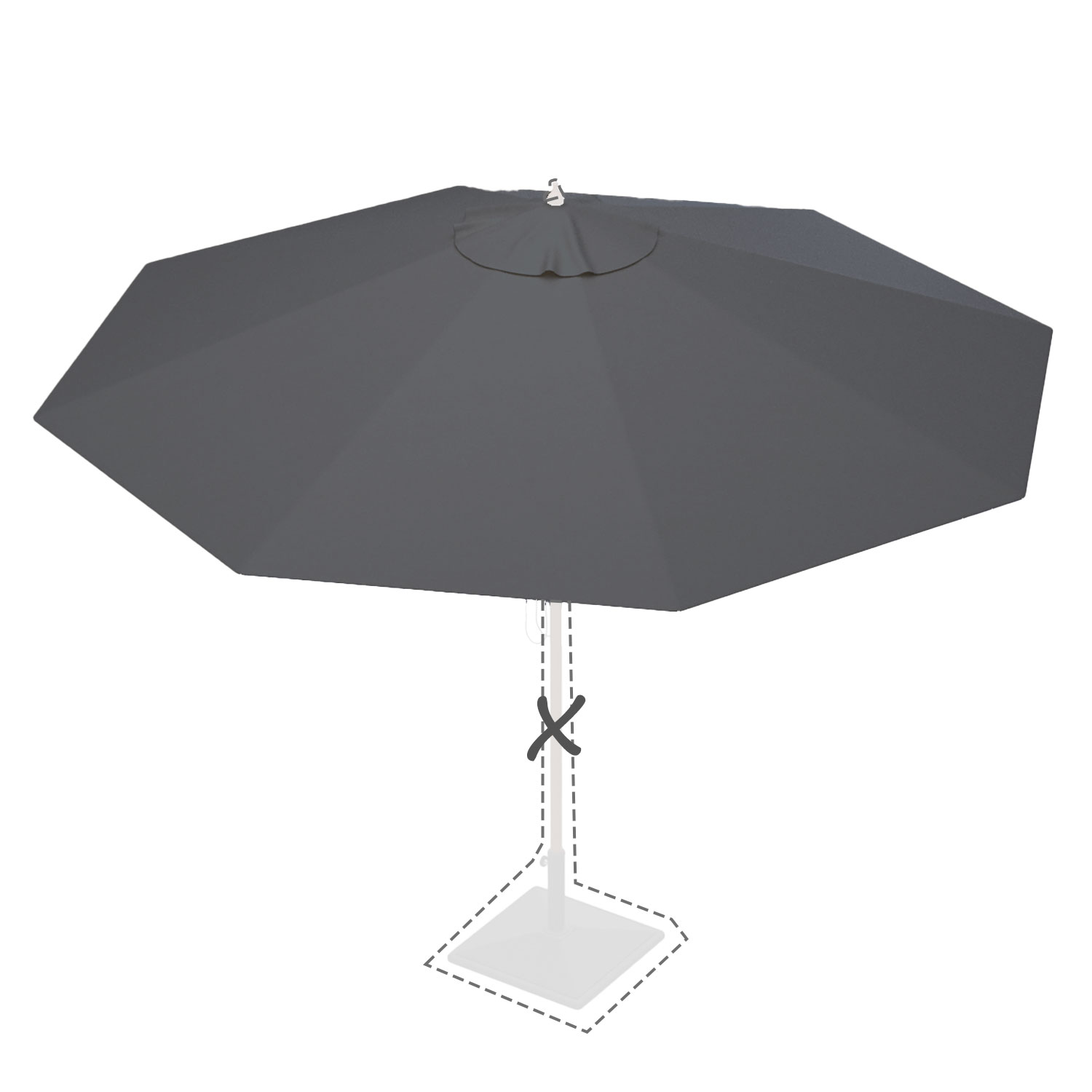 Met de afmeting wordt de afmeting van de parasolkap in geopende stand bedoeld