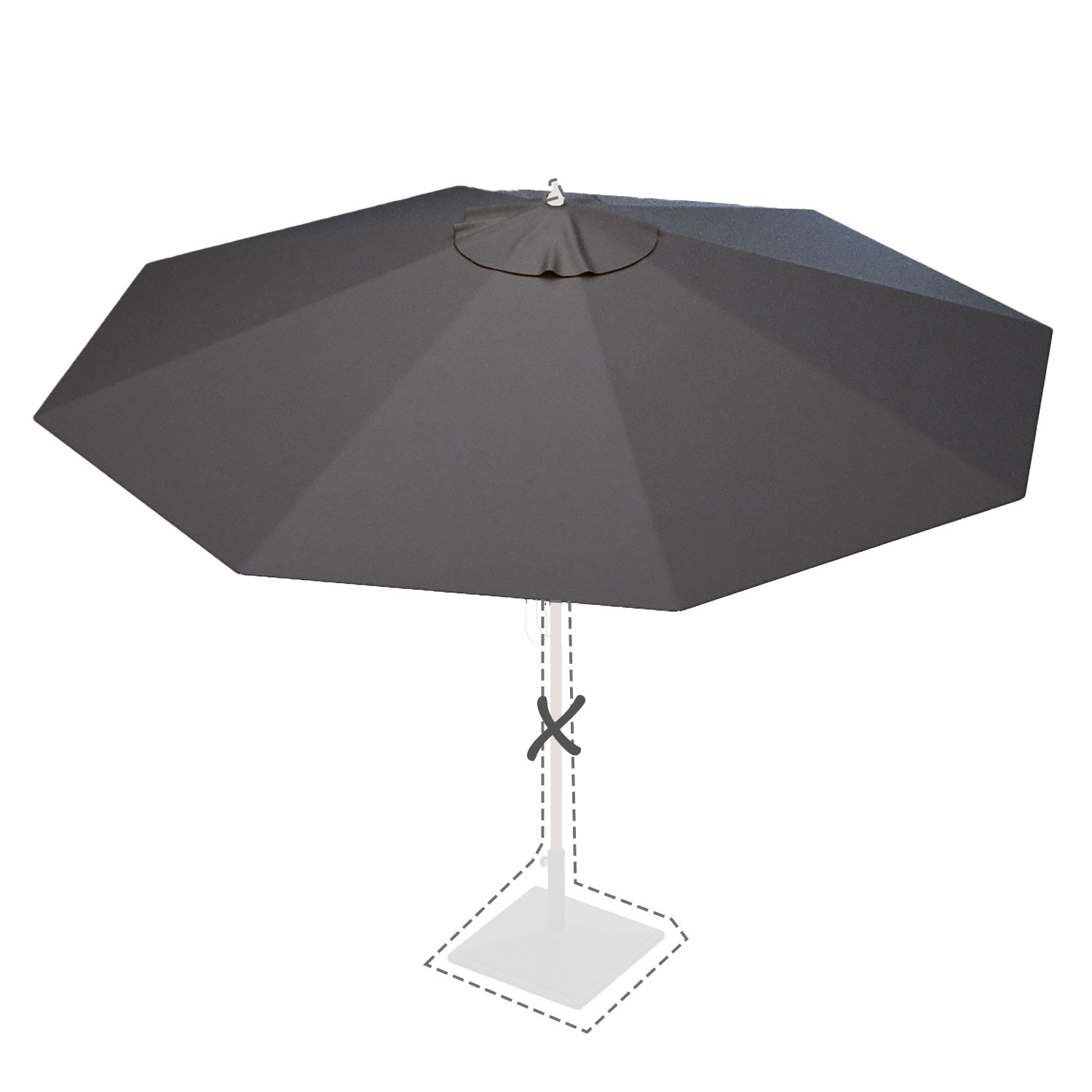 Met de afmeting wordt de afmeting van de parasolkap in geopende stand bedoeld