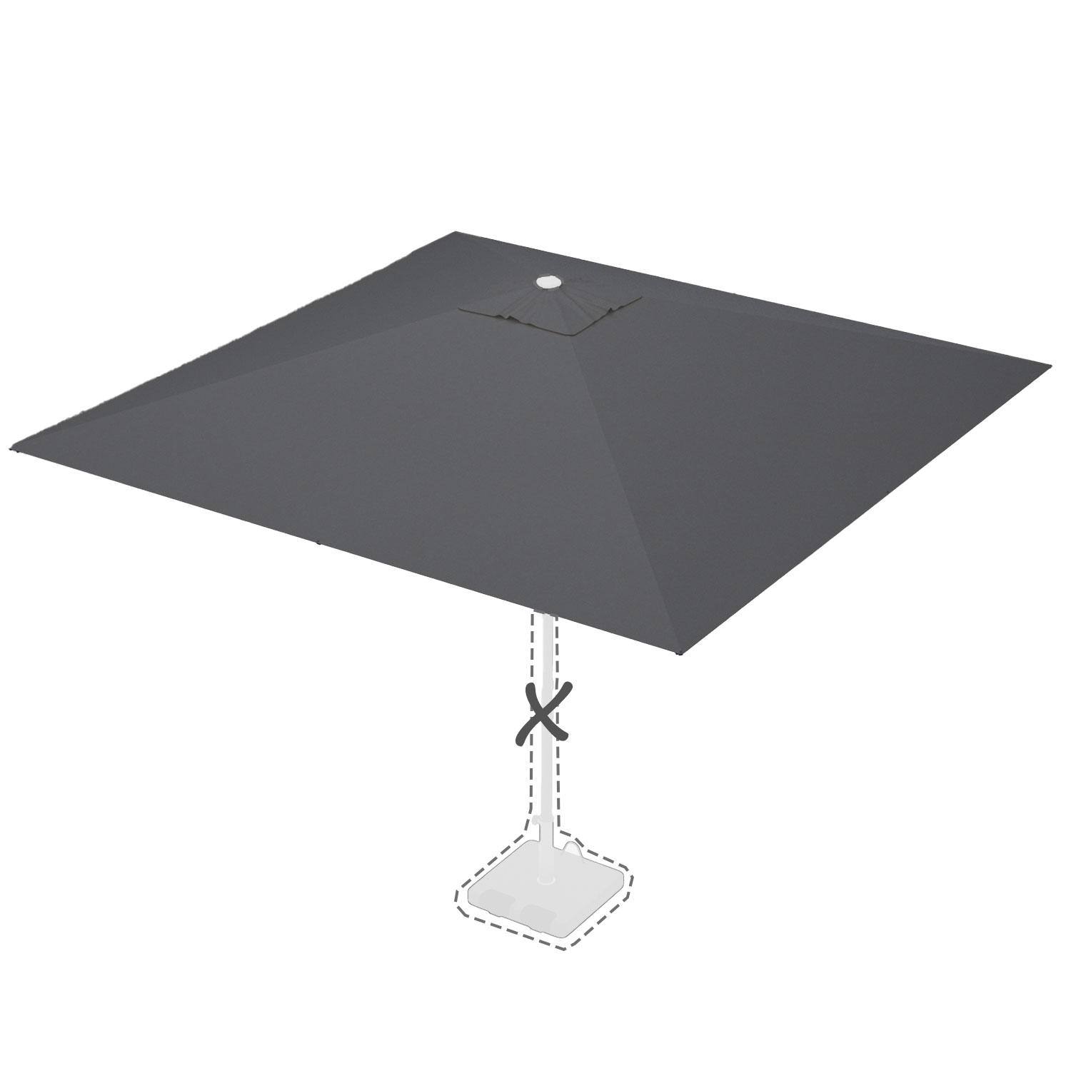 Met de afmeting wordt de afmeting van de parasolkap in geopende stand bedoeld