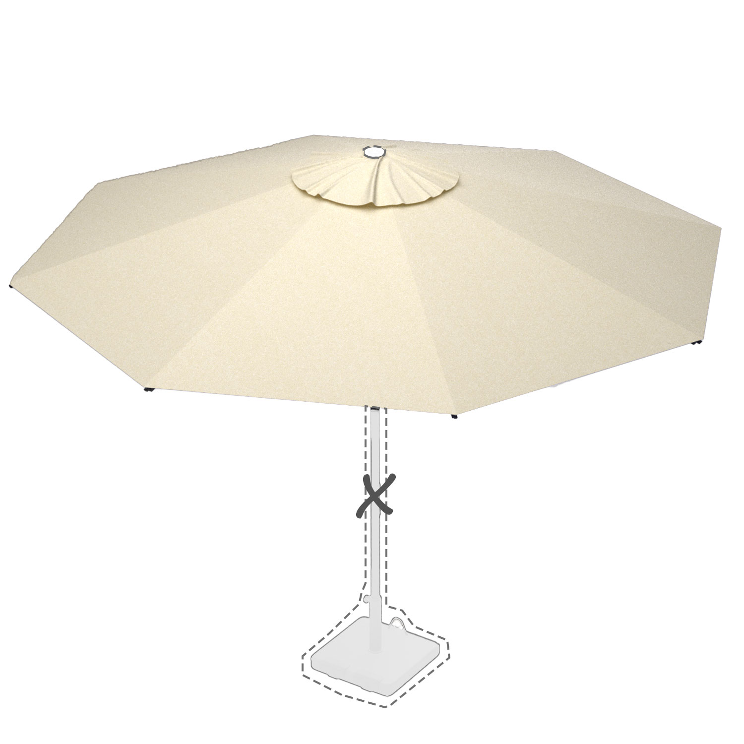 Met de afmeting wordt de afmeting van de parasolkap in geopende stand bedoeld