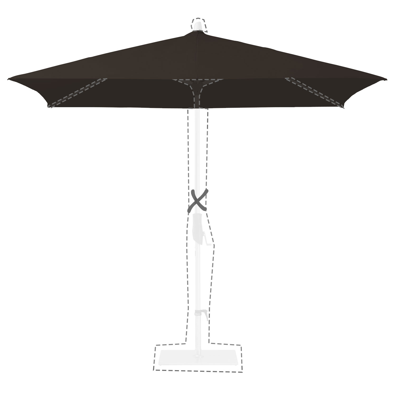 Met de afmeting wordt de afmeting van de parasolkap in geopende stand bedoeld