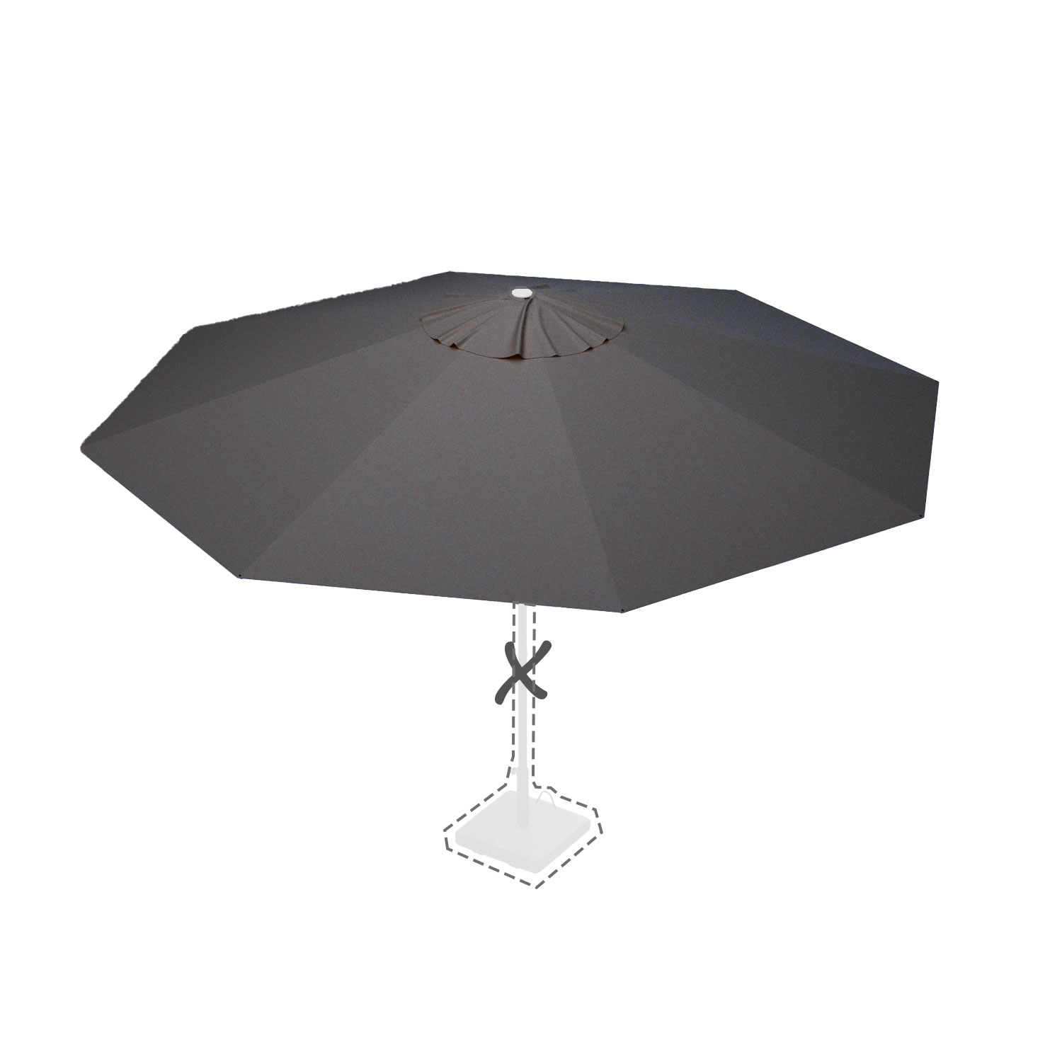 Met de afmeting wordt de afmeting van de parasolkap in geopende stand bedoeld