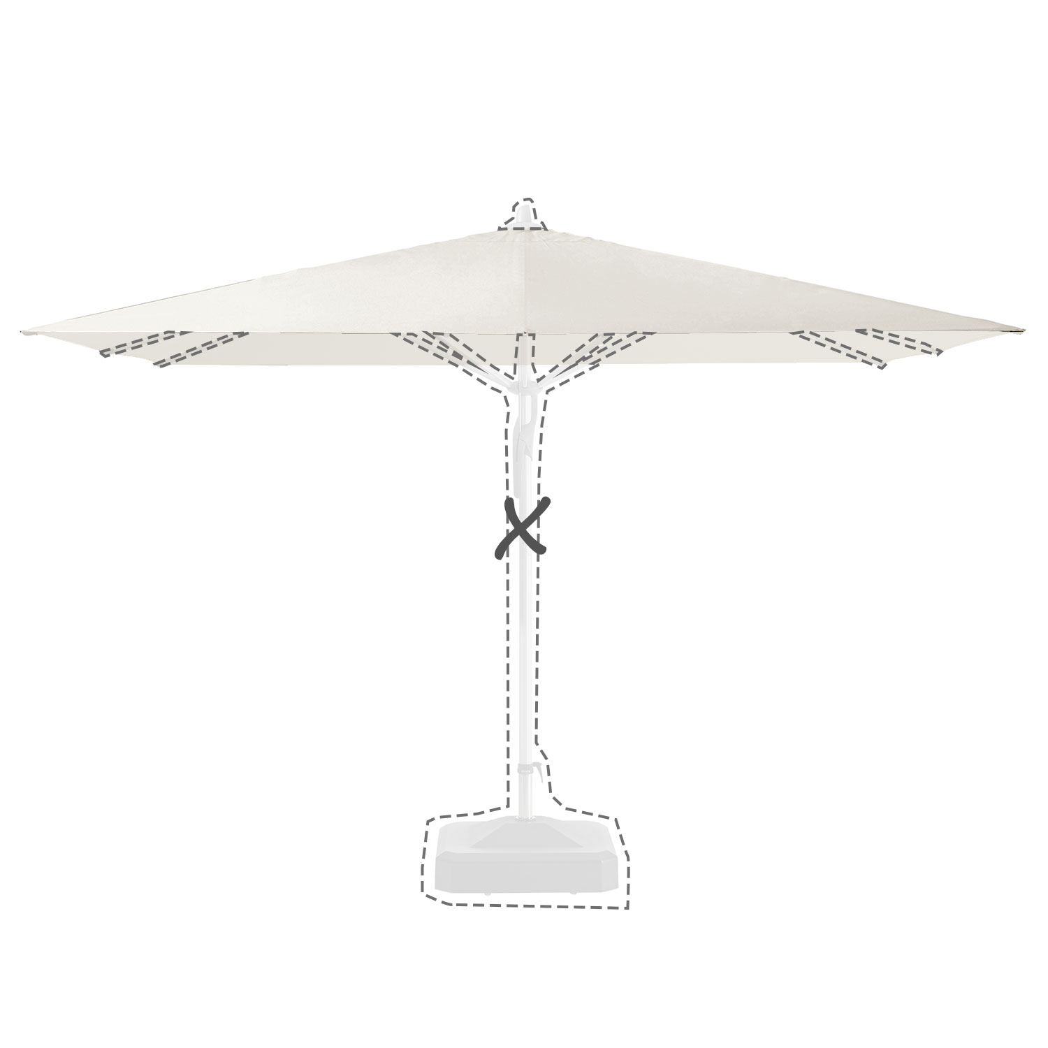 Met de afmeting wordt de afmeting van de parasolkap in geopende stand bedoeld