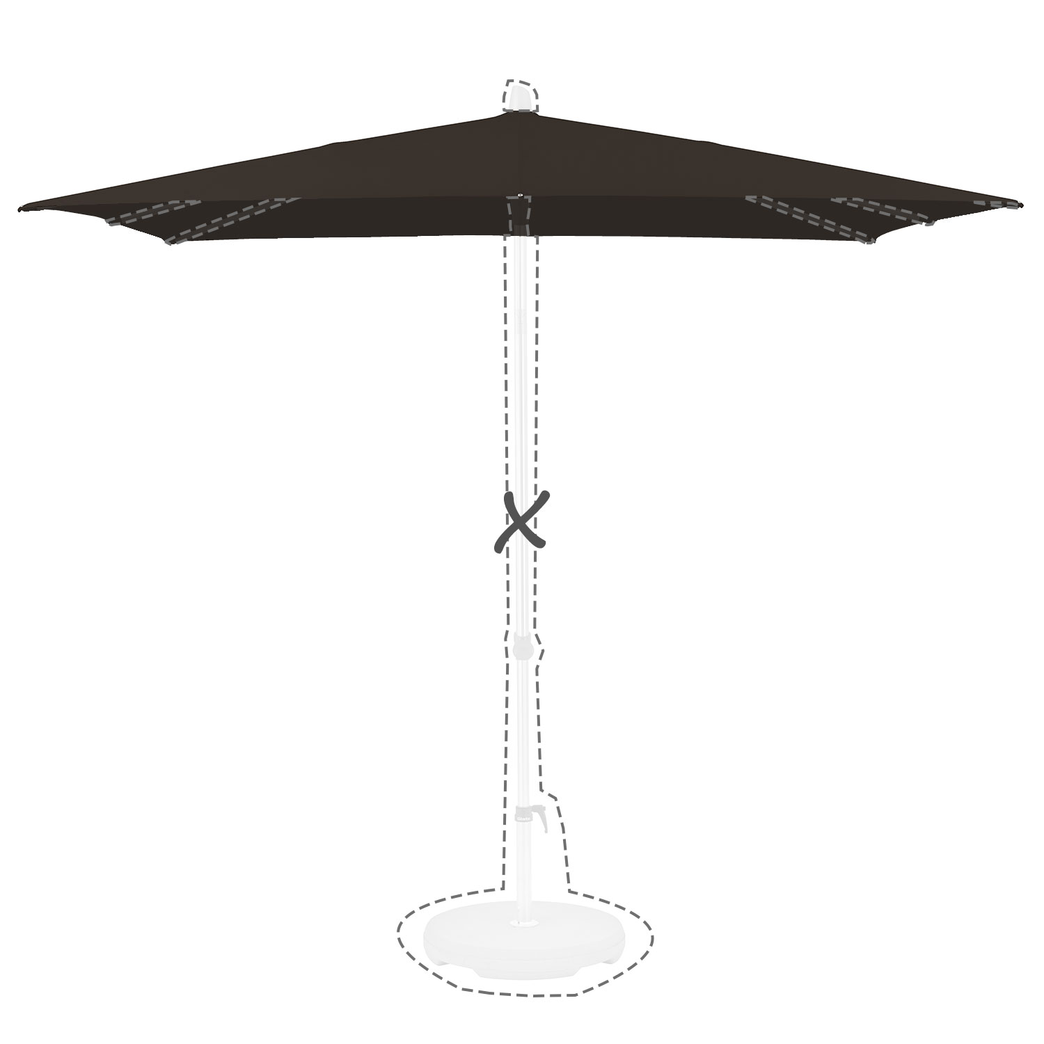 Met de afmeting wordt de afmeting van de parasolkap in geopende stand bedoeld