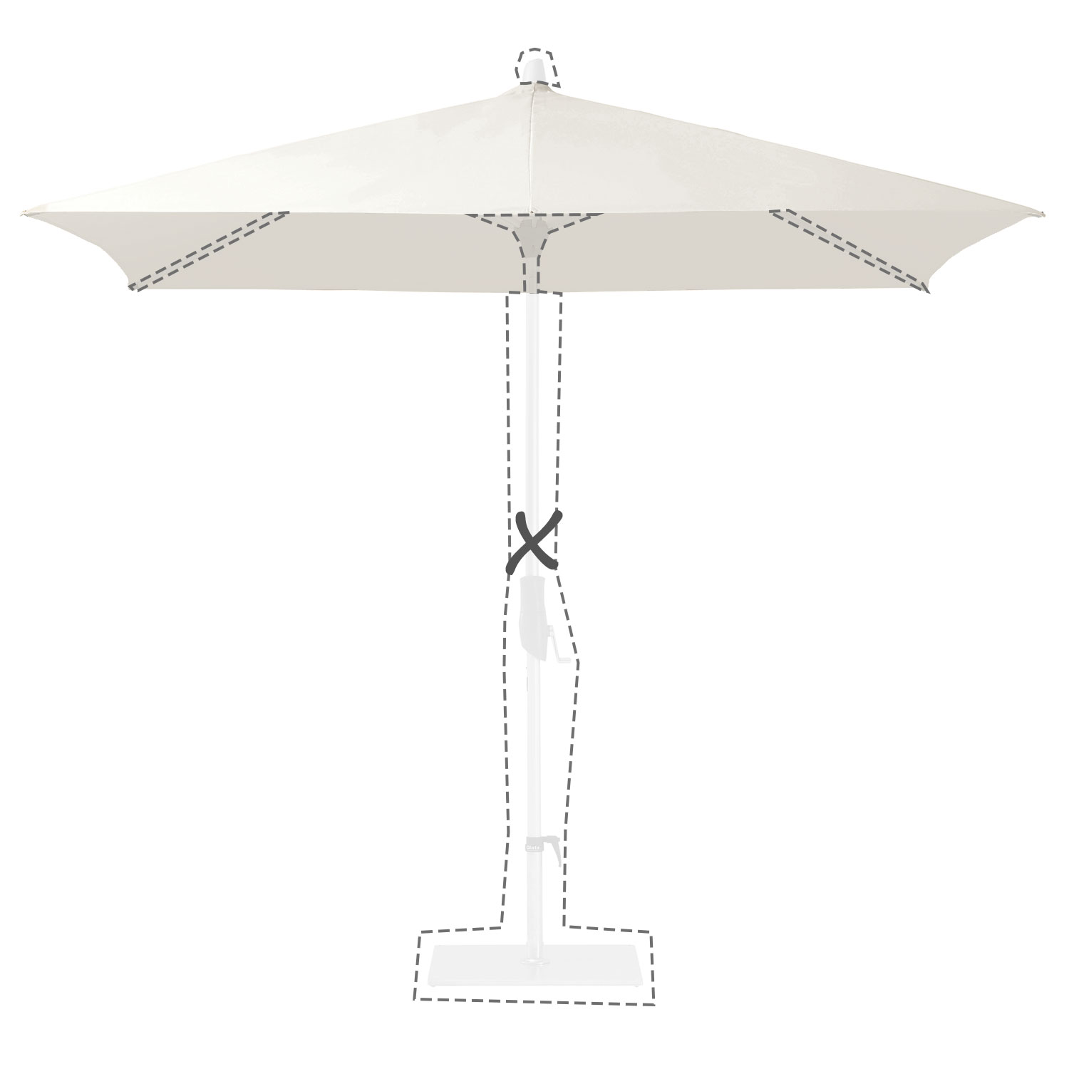 Met de afmeting wordt de afmeting van de parasolkap in geopende stand bedoeld