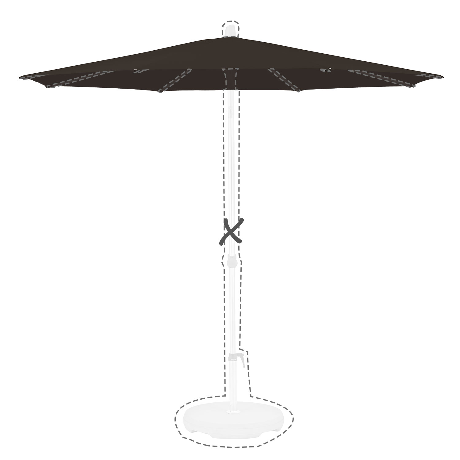 Met de afmeting wordt de afmeting van de parasolkap in geopende stand bedoeld