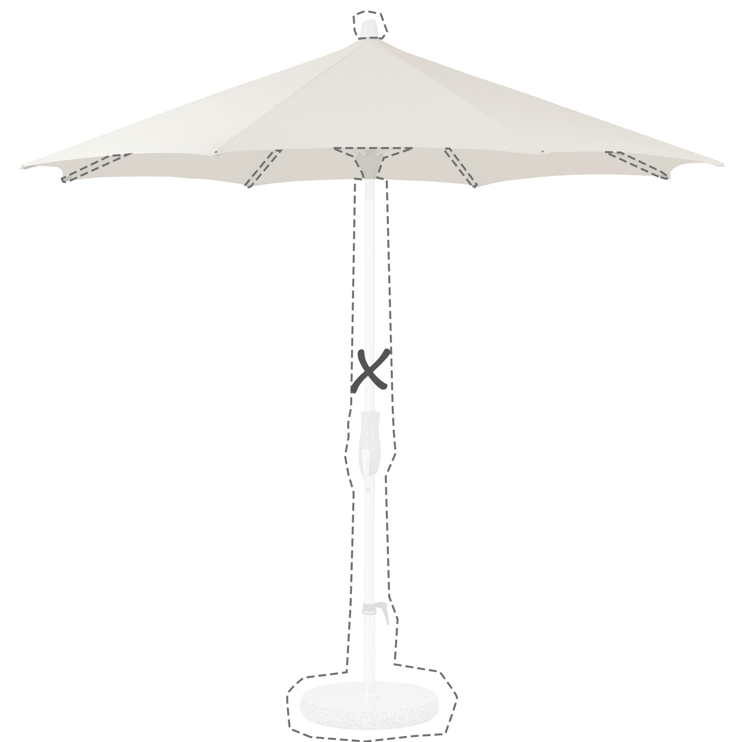 Glatz heeft de 'Alu-twist' en vanaf 2023 ook de 'Twist' parasol. Dit doek is enkel geschikt voor de Alu-twist! De doeken voor de Twist bestel je hier