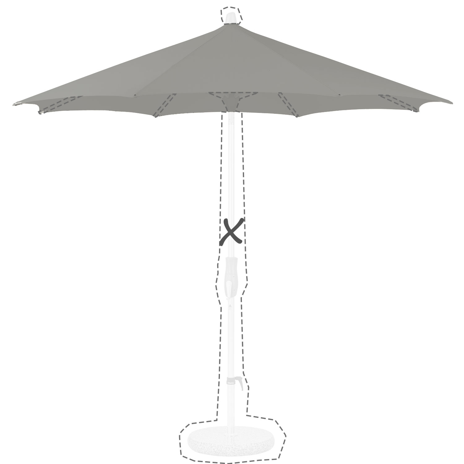 Met de afmeting wordt de afmeting van de parasolkap in geopende stand bedoeld