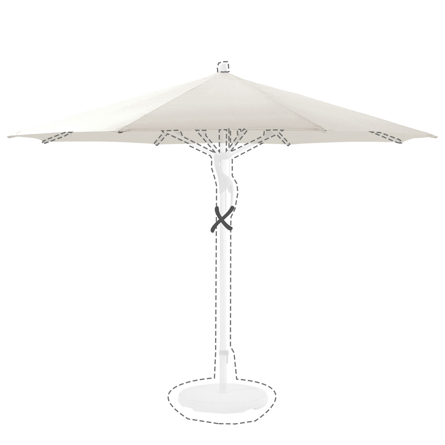 Met de afmeting wordt de afmeting van de parasolkap in geopende stand bedoeld