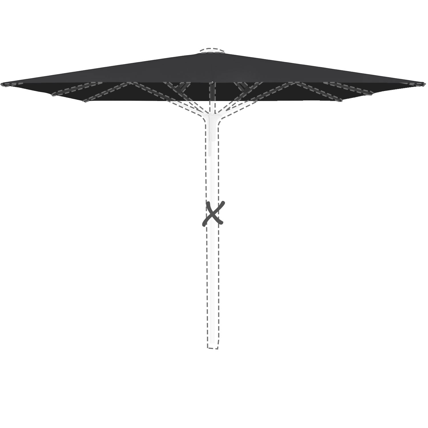 Met de afmeting wordt de afmeting van de parasolkap in geopende stand bedoeld
