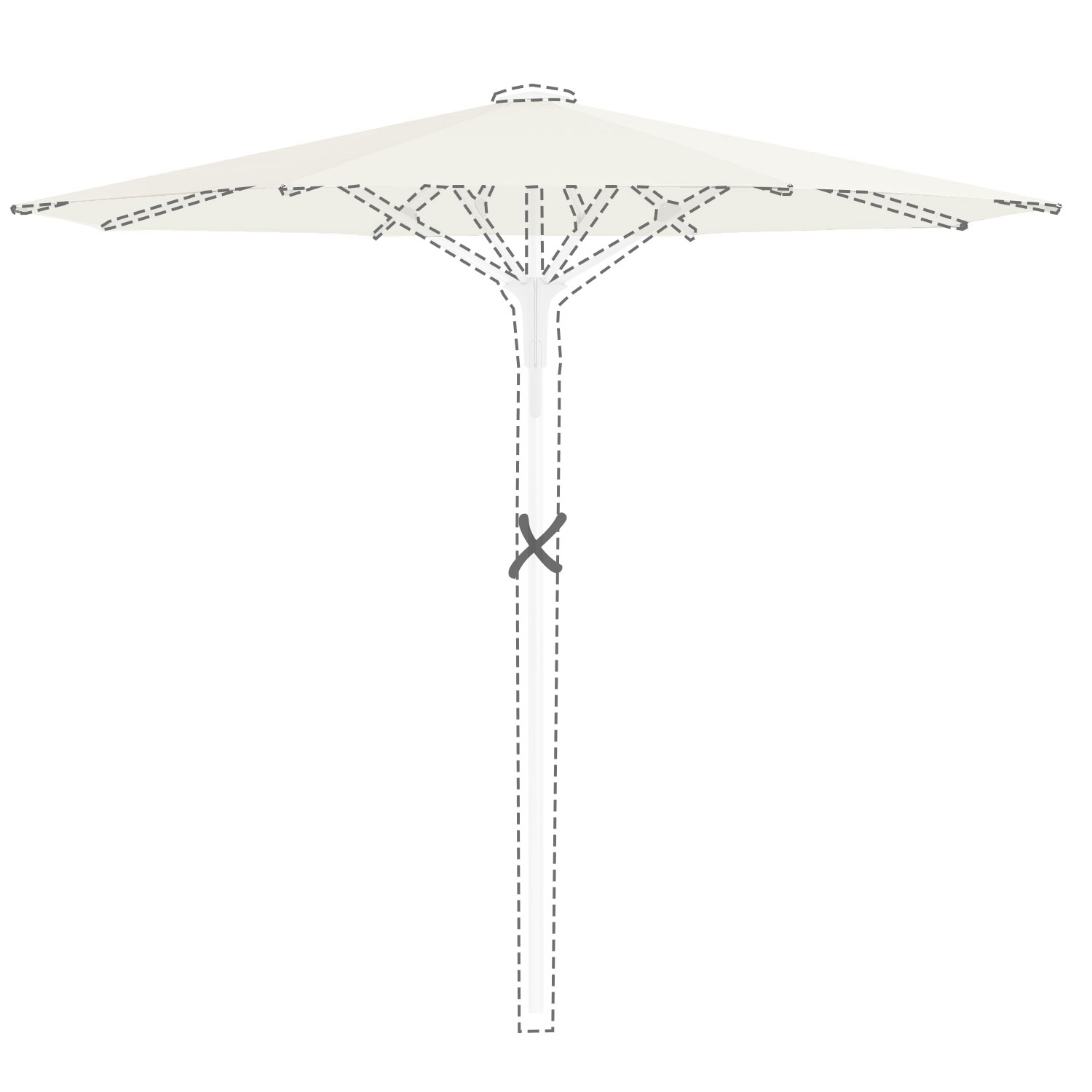 Met de afmeting wordt de afmeting van de parasolkap in geopende stand bedoeld