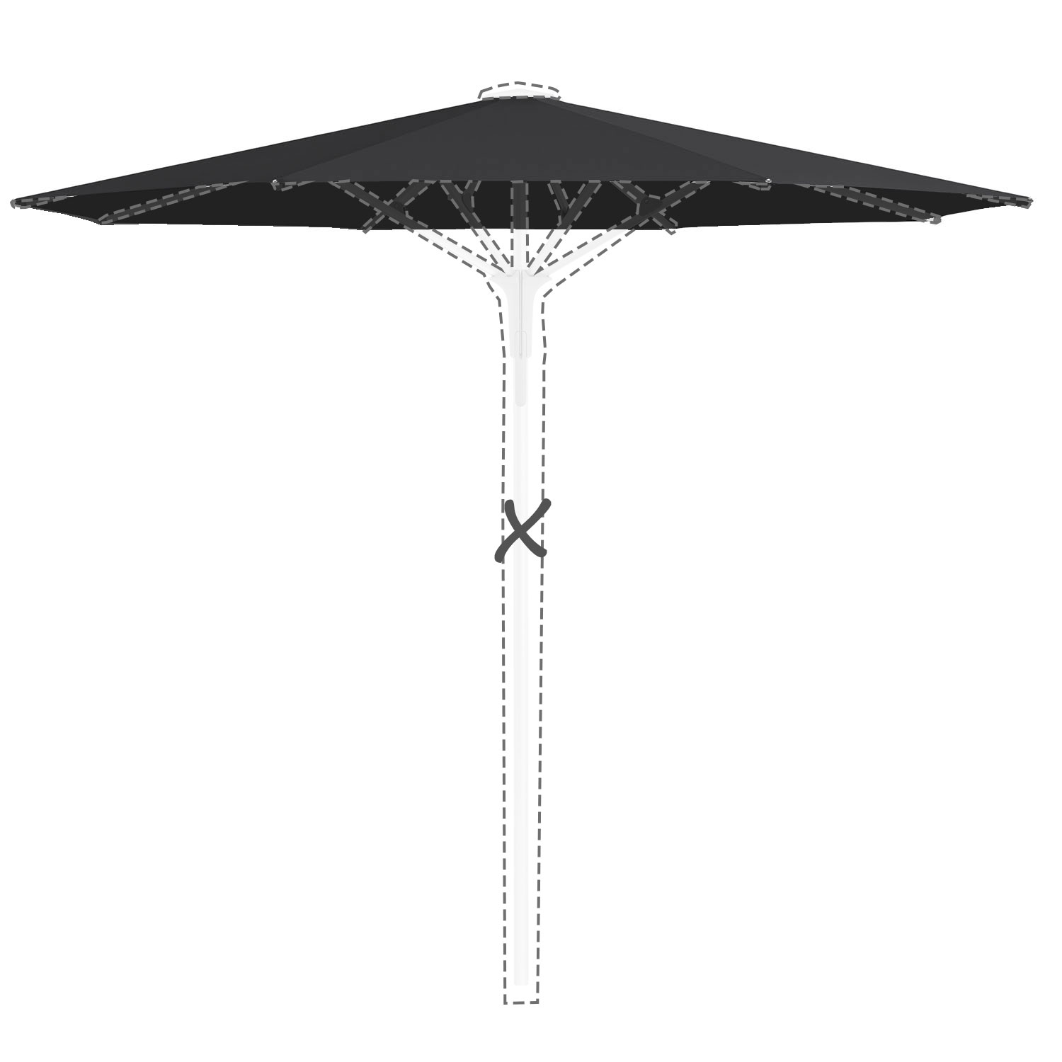Met de afmeting wordt de afmeting van de parasolkap in geopende stand bedoeld