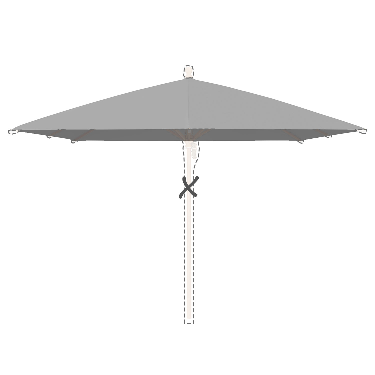 Met de afmeting wordt de afmeting van de parasolkap in geopende stand bedoeld