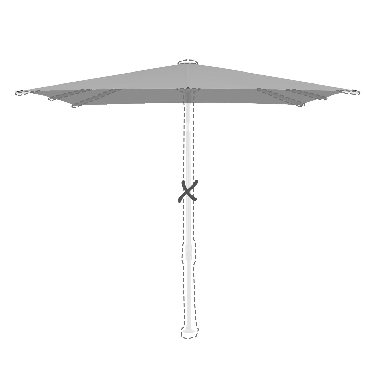 Met de afmeting wordt de afmeting van de parasolkap in geopende stand bedoeld