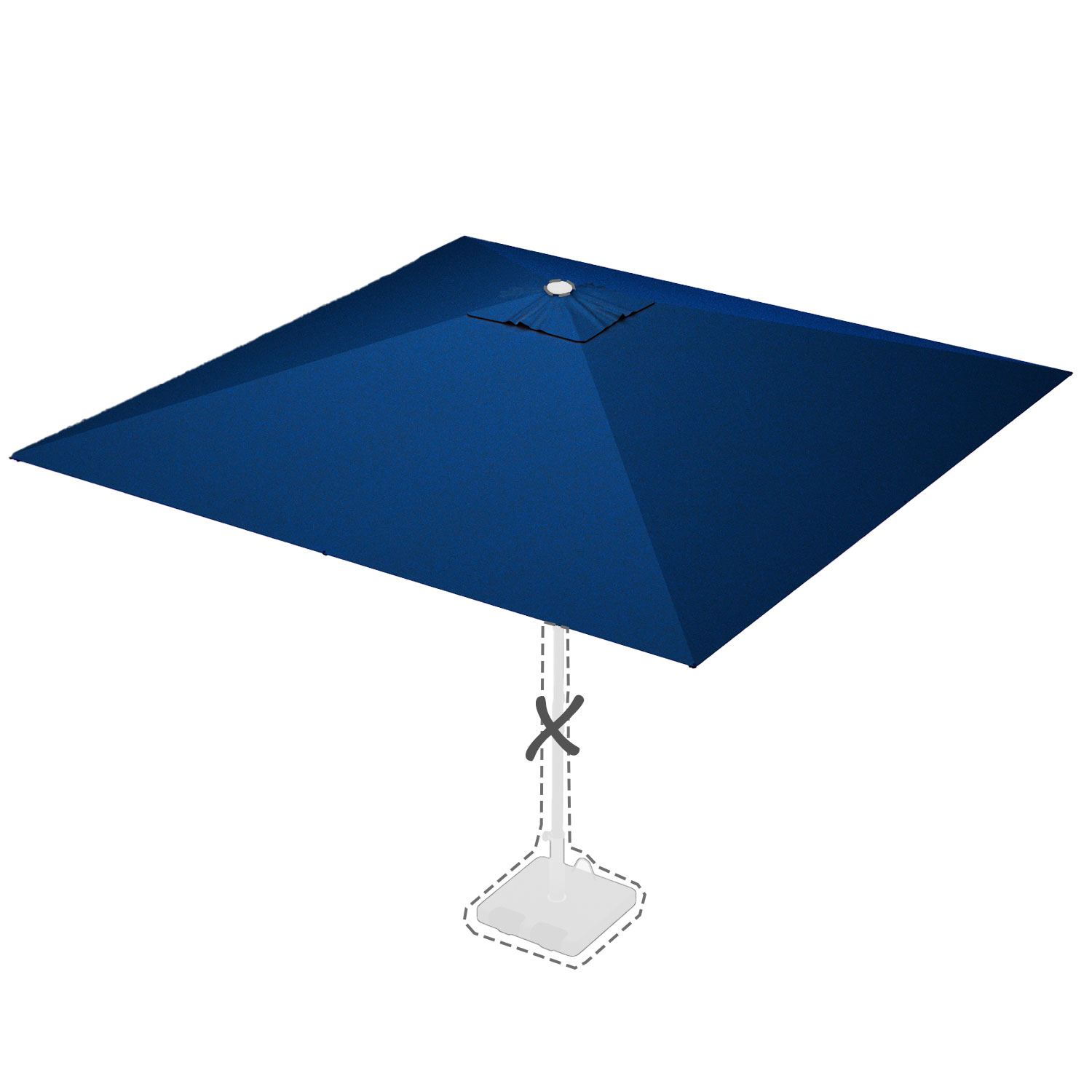 Met de afmeting wordt de afmeting van de parasolkap in geopende stand bedoeld