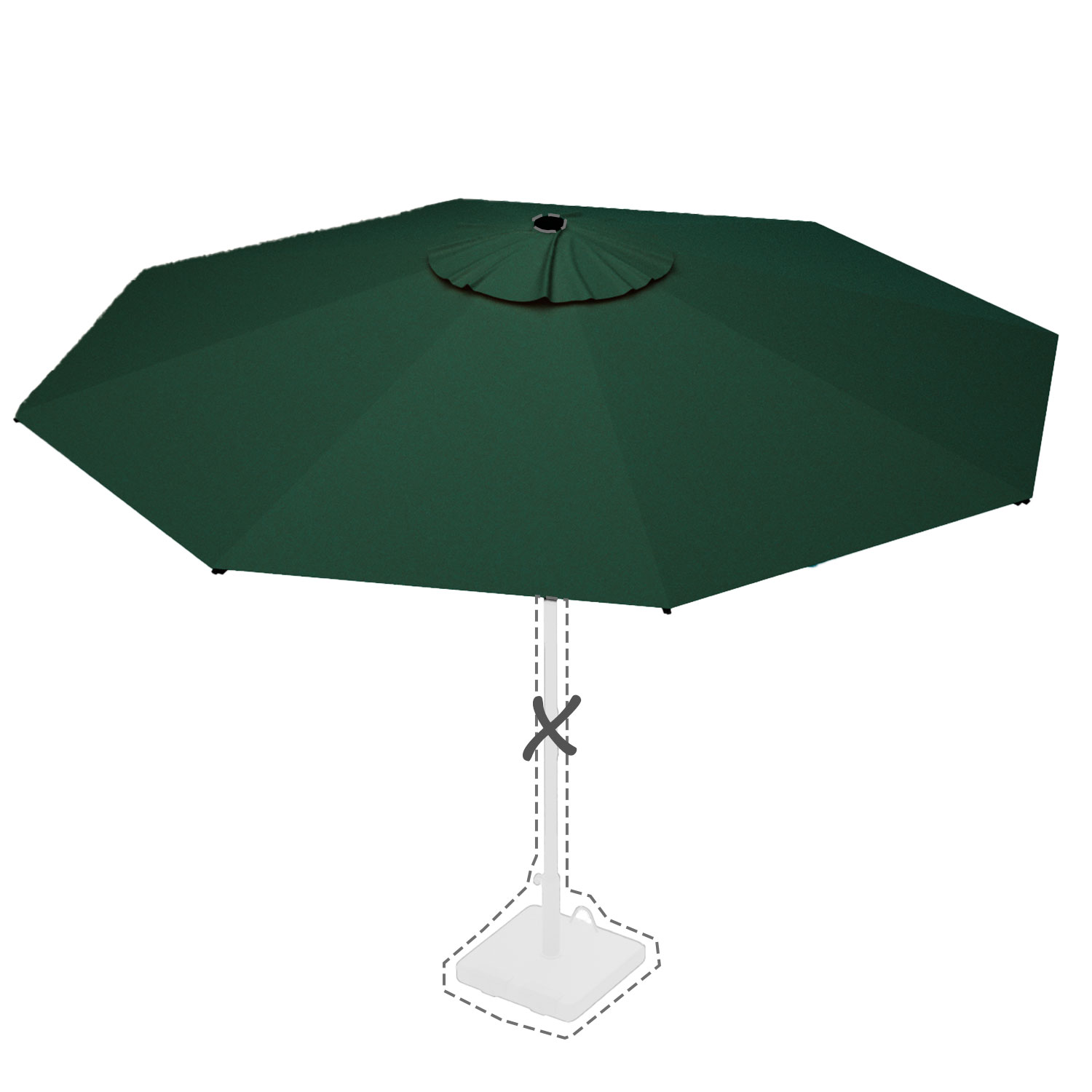 Met de afmeting wordt de afmeting van de parasolkap in geopende stand bedoeld