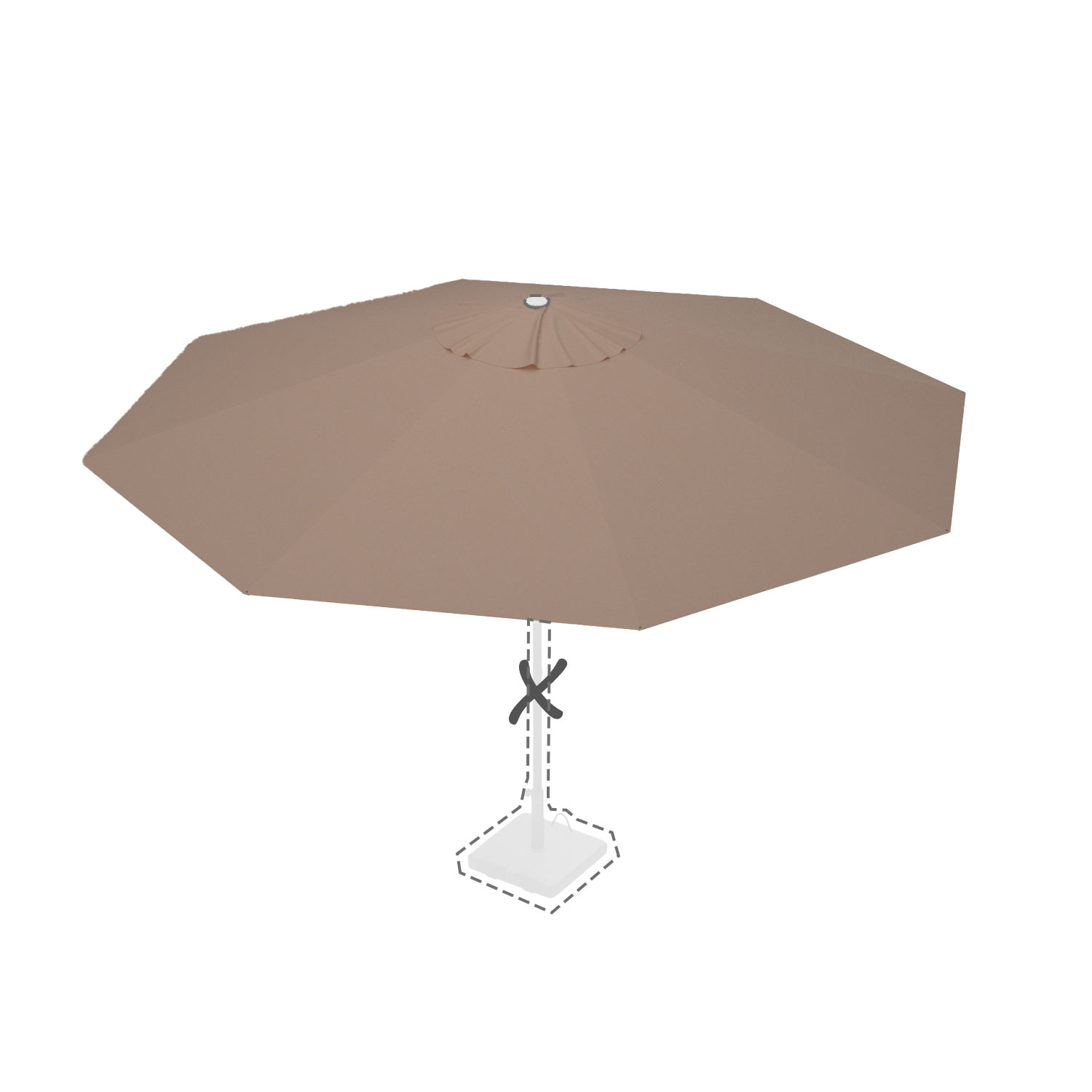 Met de afmeting wordt de afmeting van de parasolkap in geopende stand bedoeld