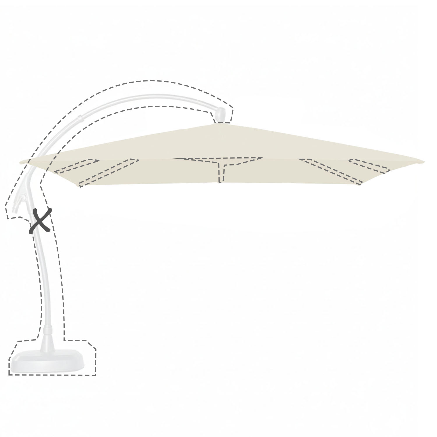 Dieptevariant: Deze parasols zijn speciaal ontworpen voor plaatsing aan de kopse kant van je tafel, zithoek of ligbed.