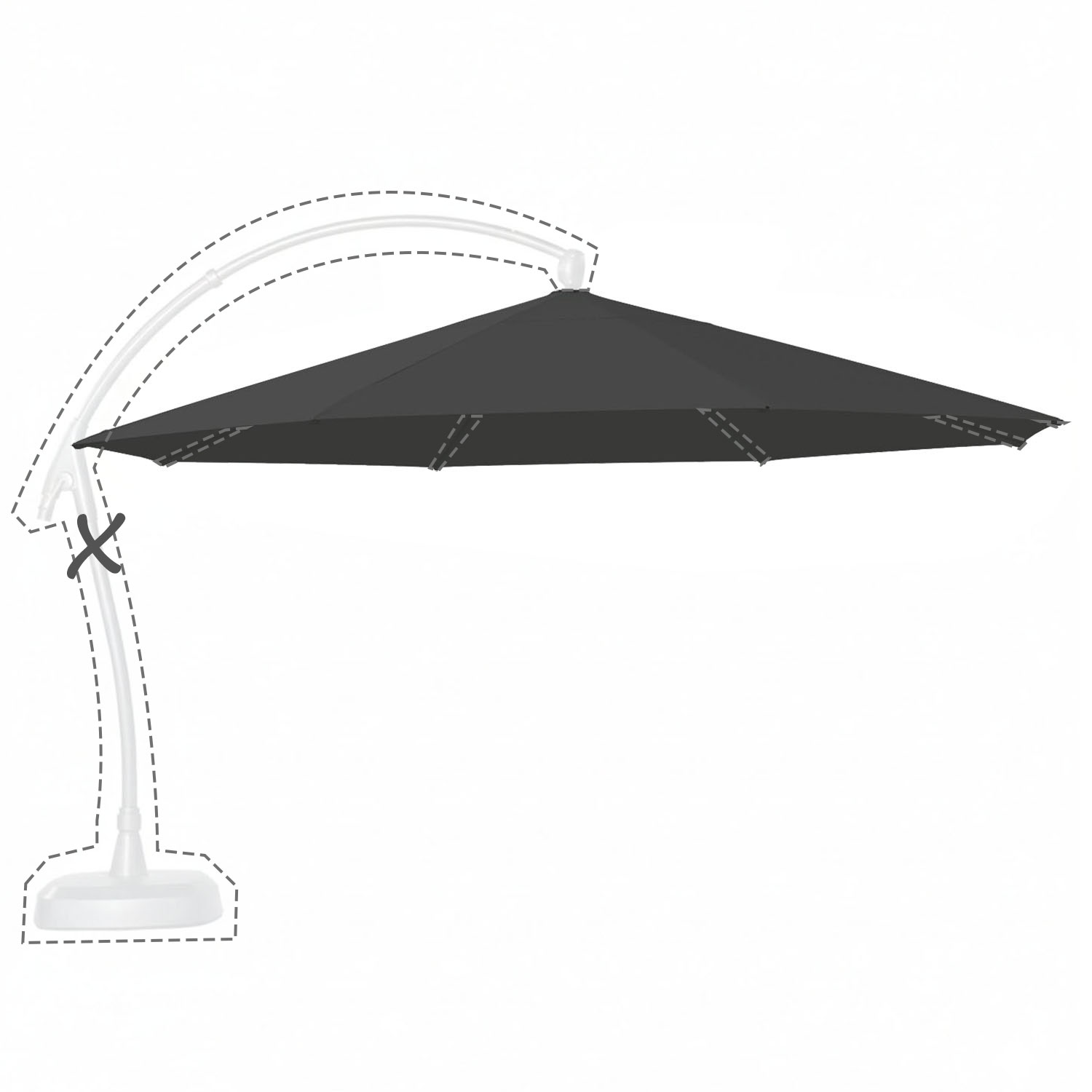 Met de afmeting wordt de afmeting van de parasolkap in geopende stand bedoeld