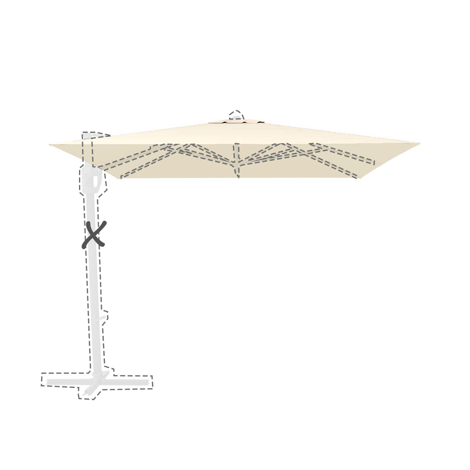 Met de afmeting wordt de afmeting van de parasolkap in geopende stand bedoeld