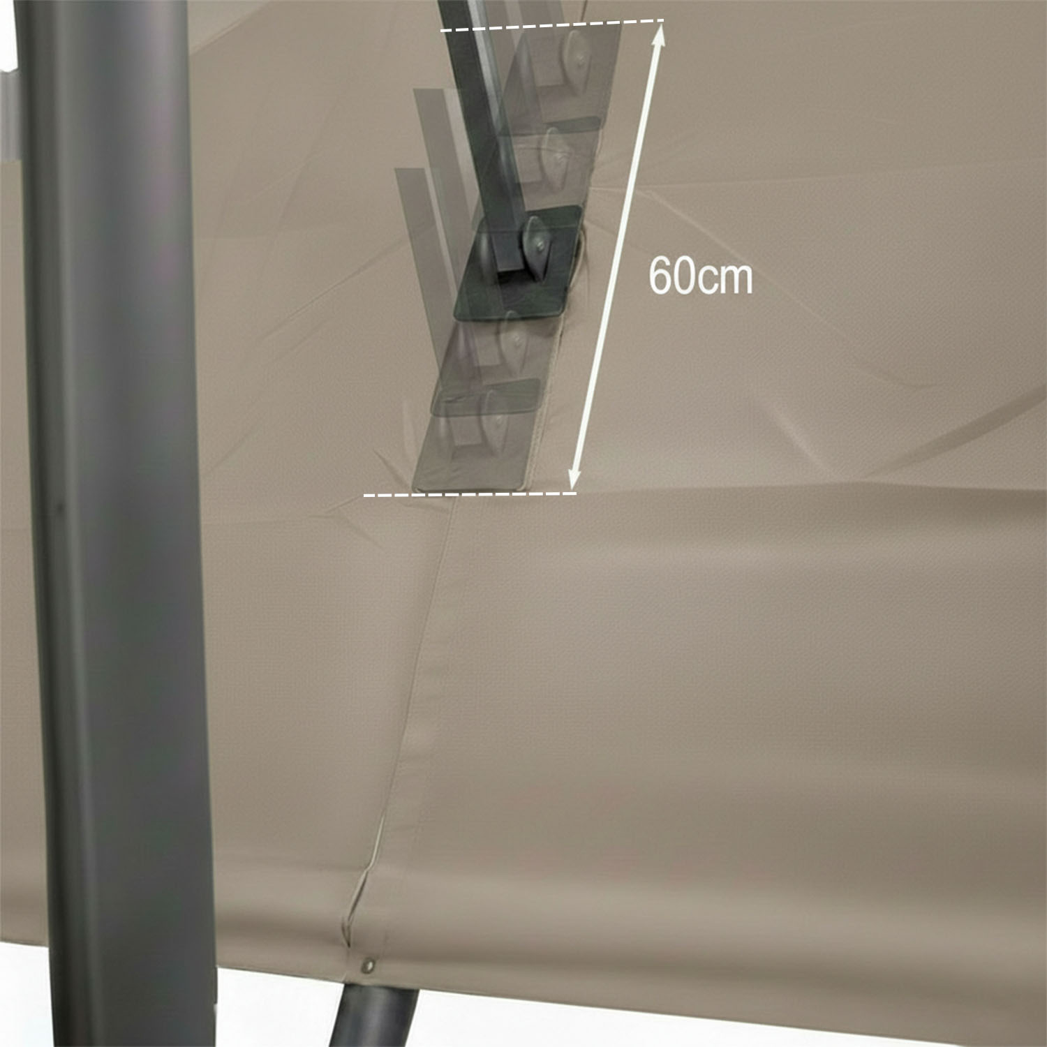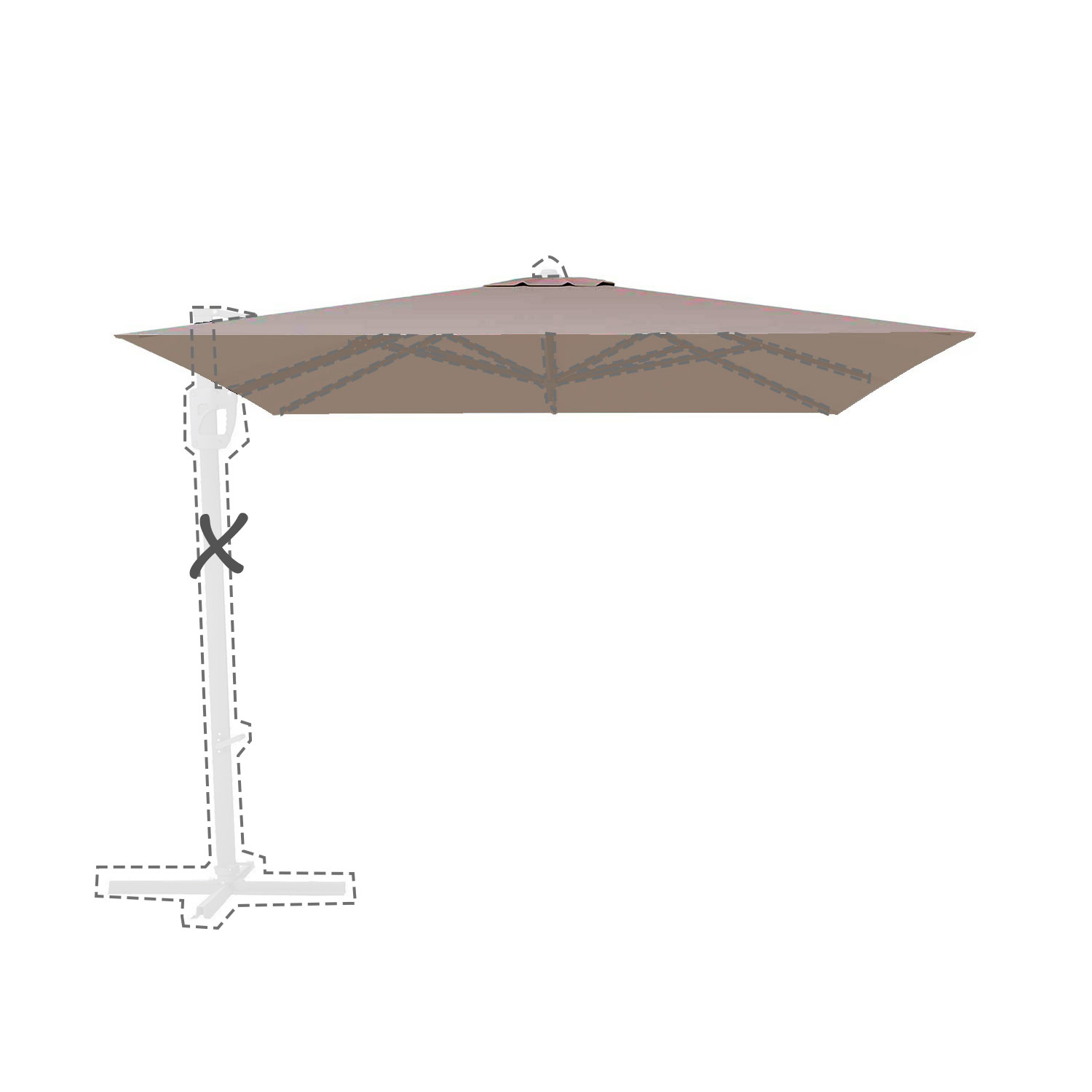 Met de afmeting wordt de afmeting van de parasolkap in geopende stand bedoeld
