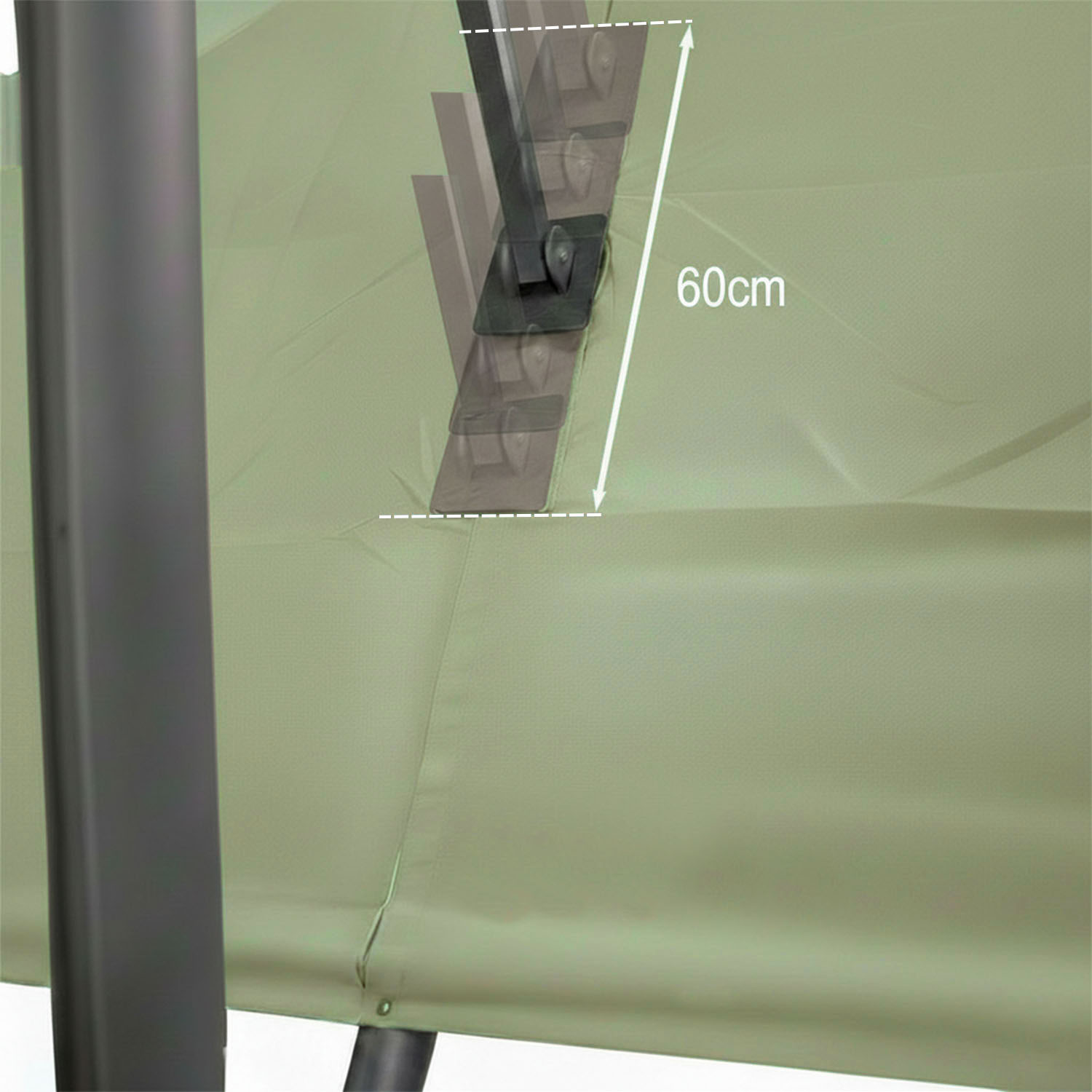 Met de afmeting wordt de afmeting van de parasolkap in geopende stand bedoeld