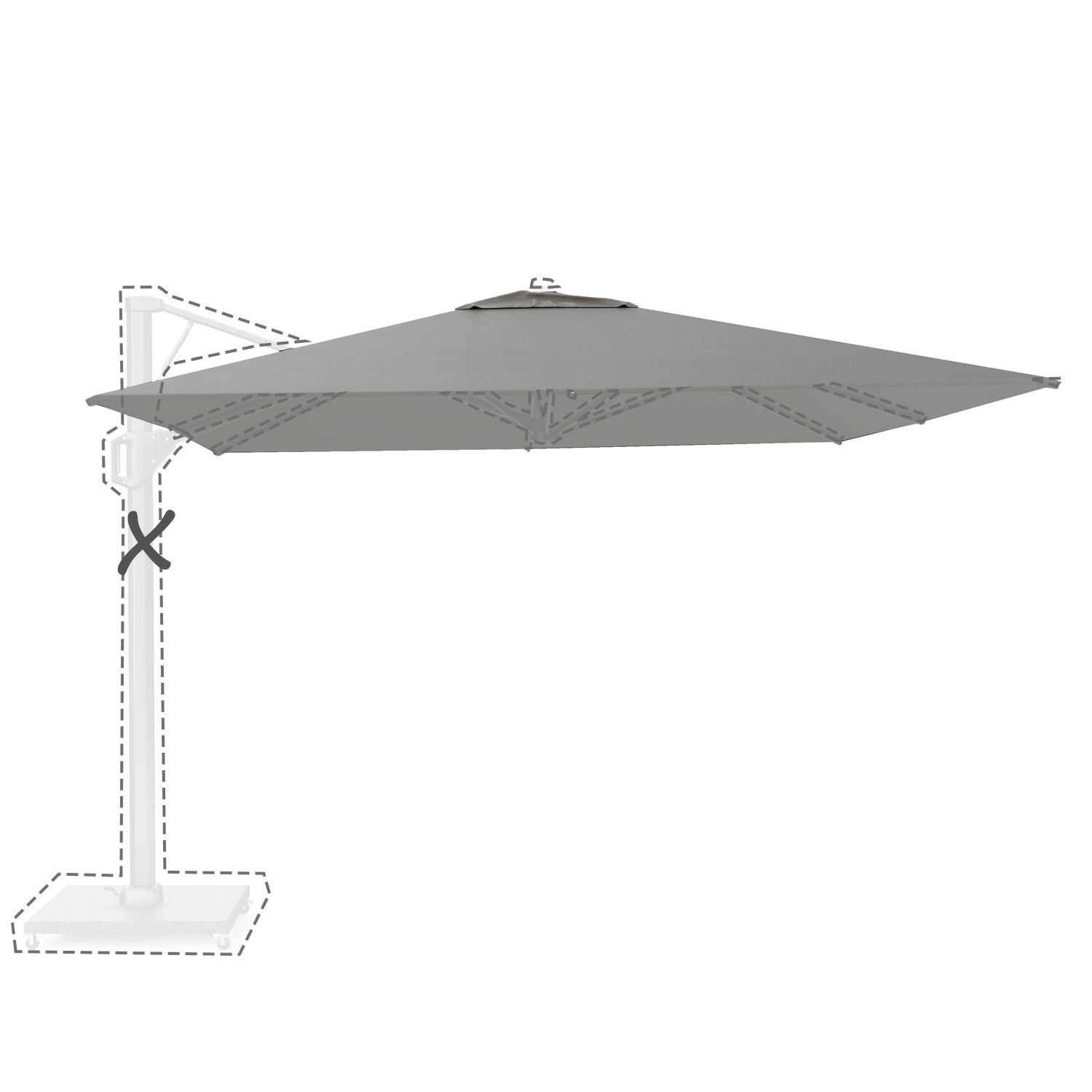Met de afmeting wordt de afmeting van de parasolkap in geopende stand bedoeld