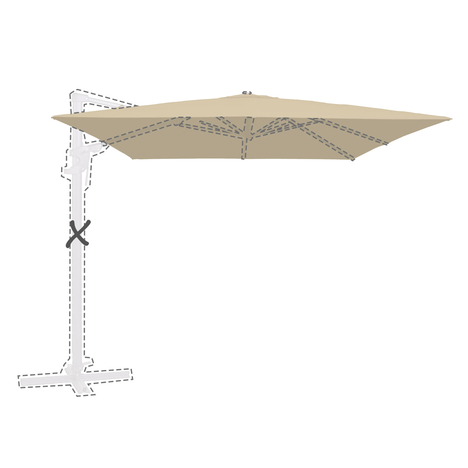 Met de afmeting wordt de afmeting van de parasolkap in geopende stand bedoeld