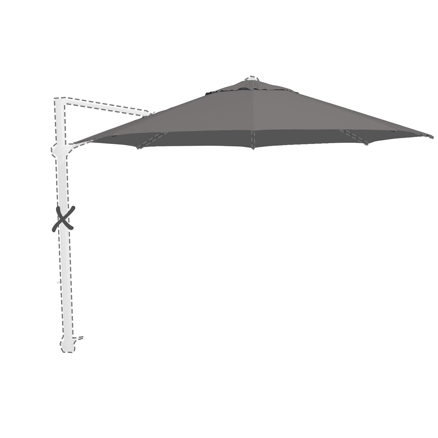 Met de afmeting wordt de afmeting van de parasolkap in geopende stand bedoeld