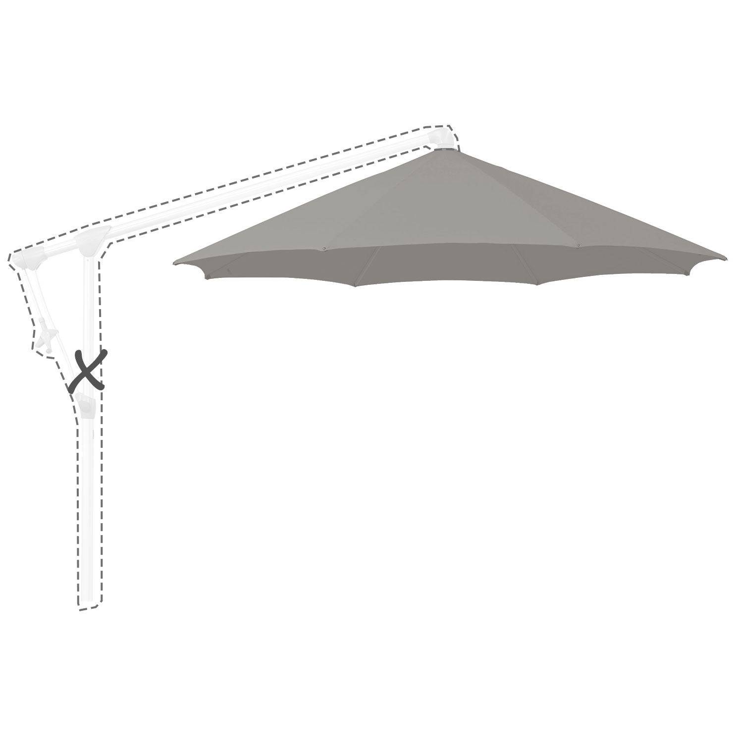 Met de afmeting wordt de afmeting van de parasolkap in geopende stand bedoeld