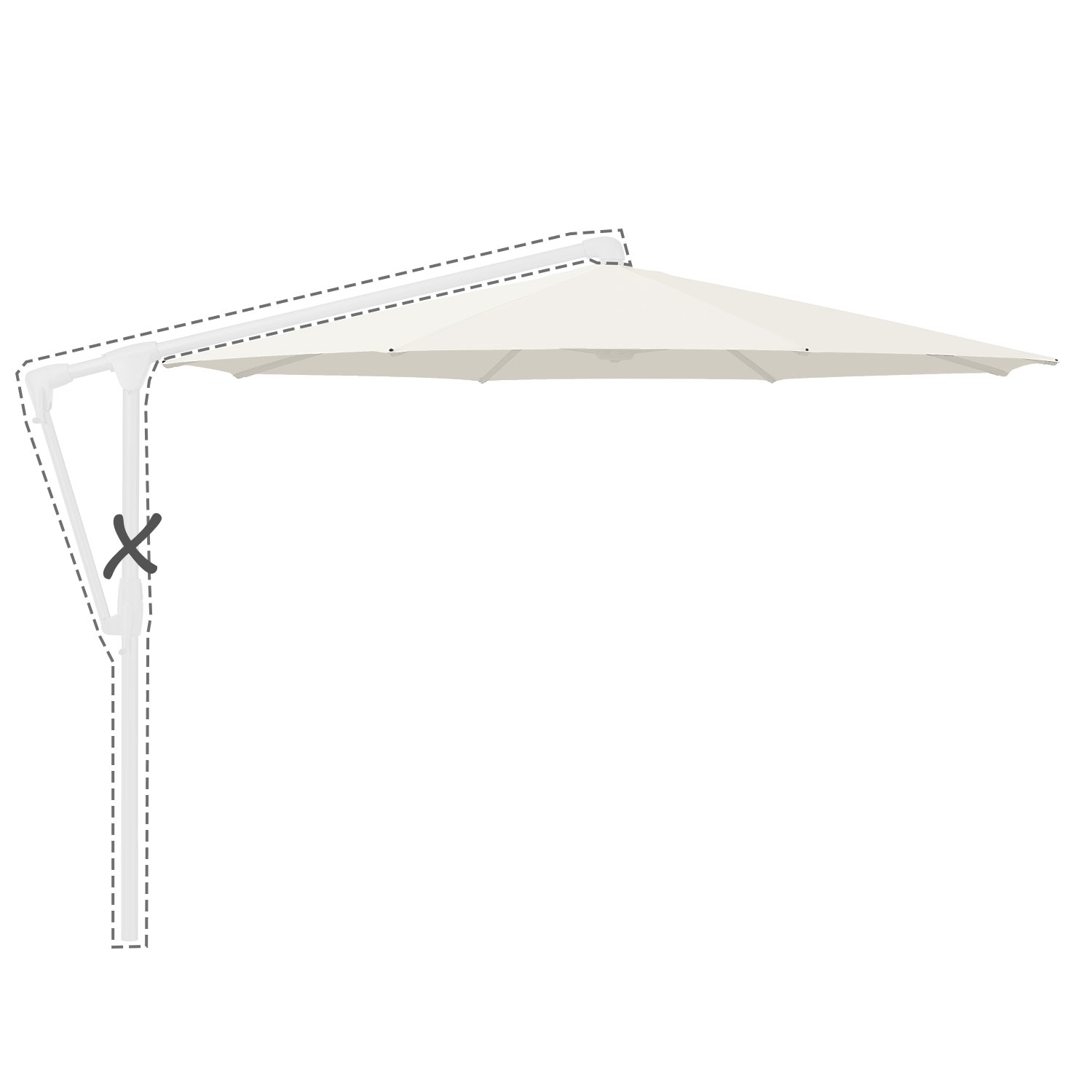 Met de afmeting wordt de afmeting van de parasolkap in geopende stand bedoeld