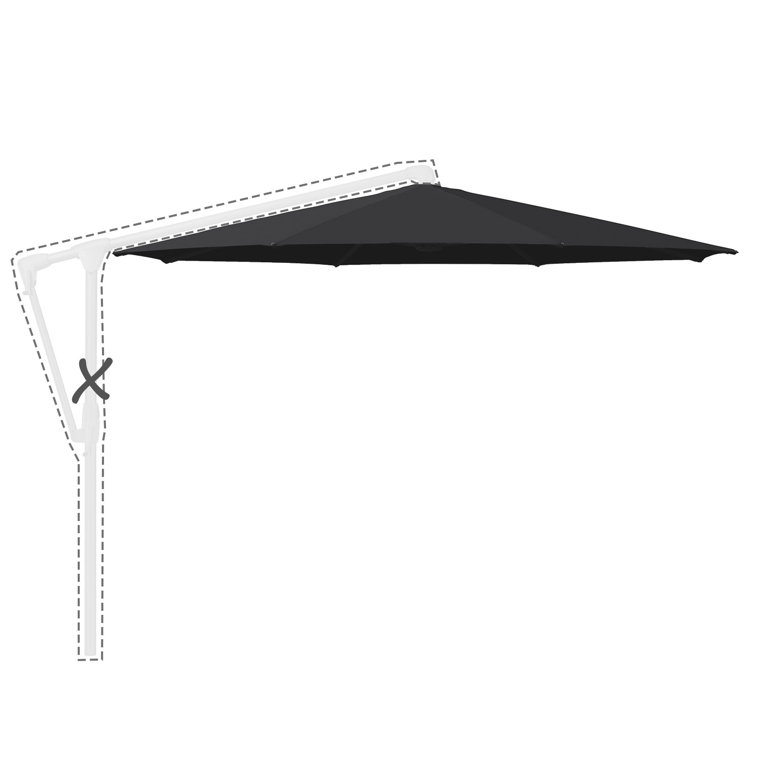 Met de afmeting wordt de afmeting van de parasolkap in geopende stand bedoeld