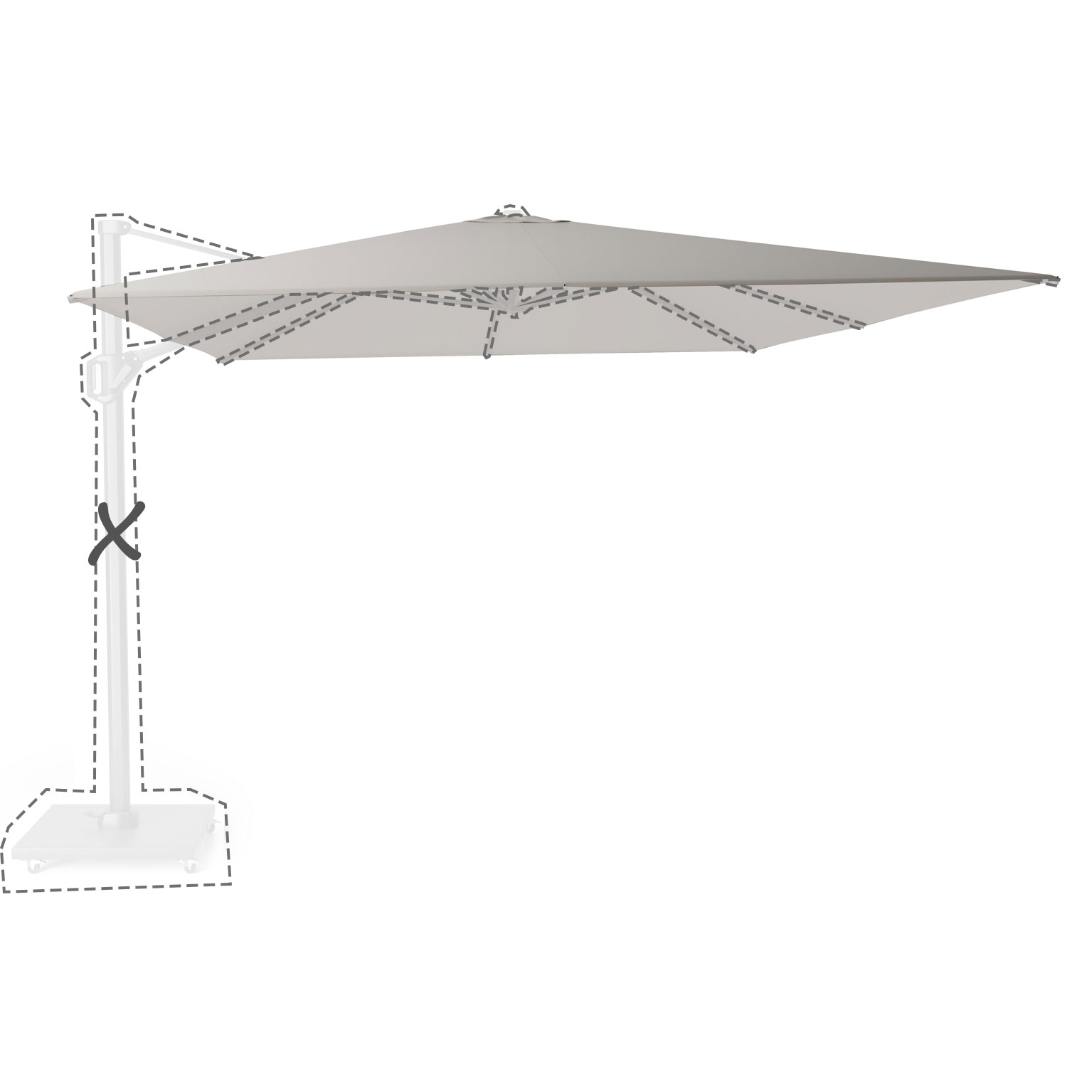 Met de afmeting wordt de afmeting van de parasolkap in geopende stand bedoeld