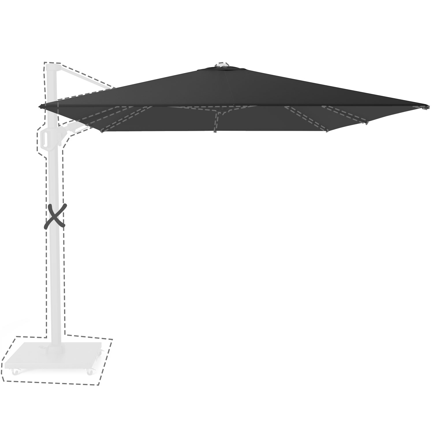 Zweefparasoldoek Challenger T2 – 300x300cm vierkant – Black – Platinum
