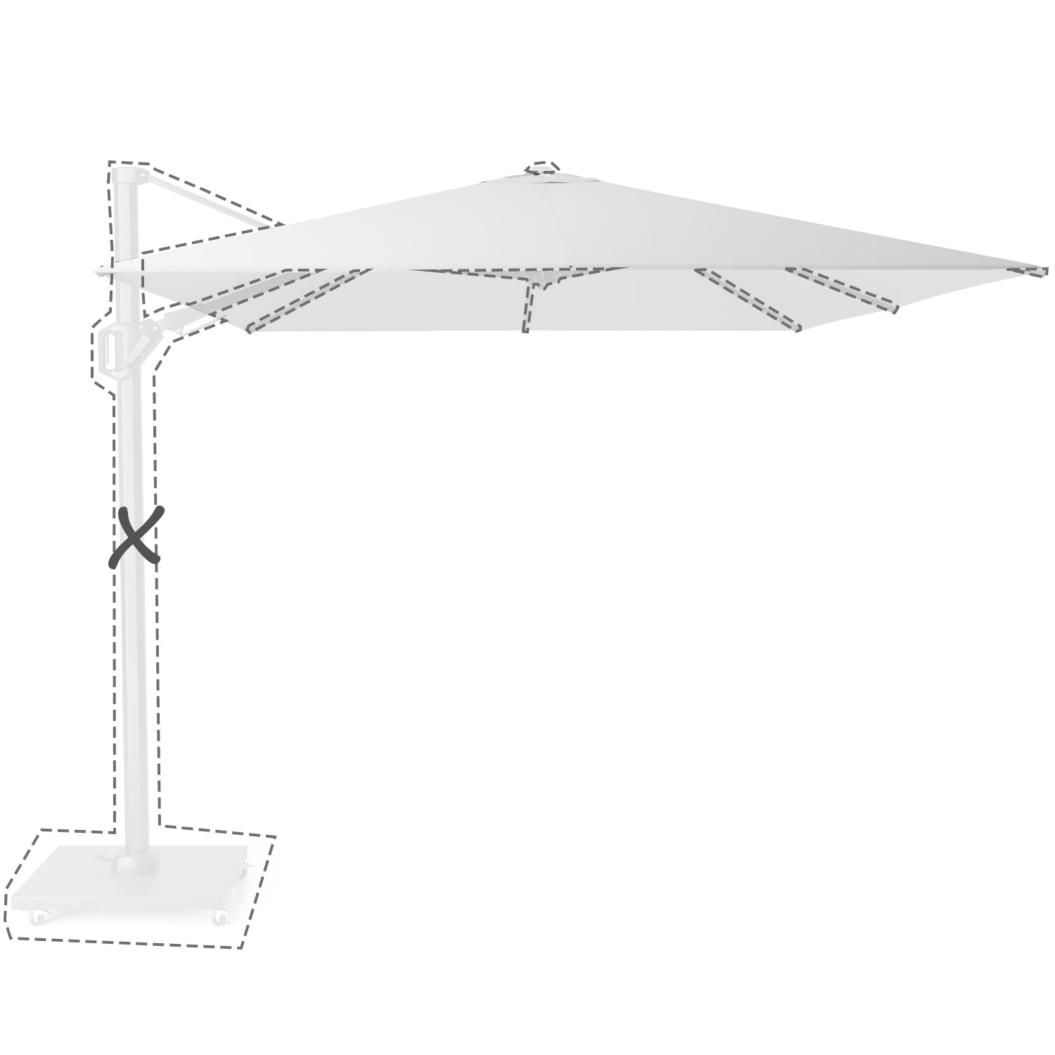 Zweefparasoldoek Challenger T2 – 300x300cm vierkant – White – Platinum