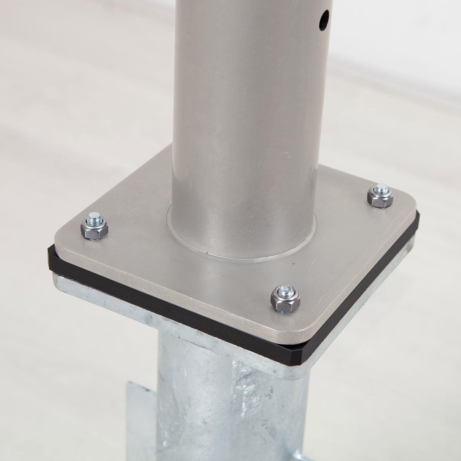 De bodemhuls dient in beton gestort te worden, wat zorgt voor een stabiele en veilige verankering.