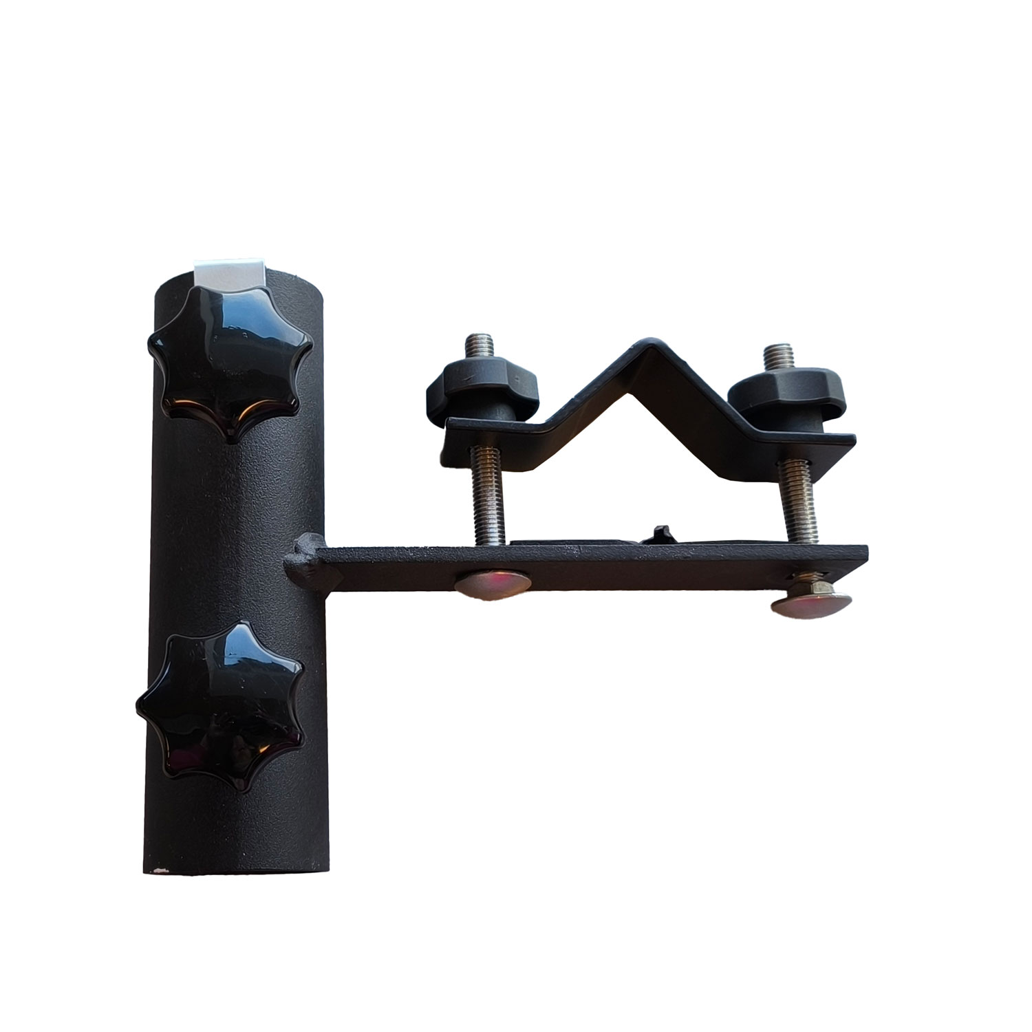 Deze balkonklem is geschikt voor de horizontale ligger van de balkon reling. Hierbij wordt de klem bevestigd met behulp van twee bouten. De parasol kan vervolgens in de buis bevestigd worden met behulp van twee draaiknoppen. Daarnaast is de klem geschikt voor parasols met een diameter van 18-38mm.