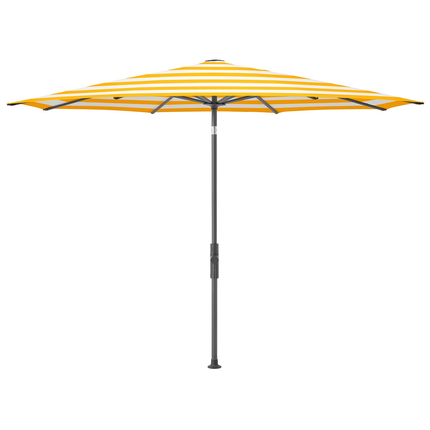 Bij vierkante en rechthoekige parasols wordt de afmeting opgegeven in lengte x breedte. Bij ronde parasols wordt de diameter (doorsnede) van de parasolkap als afmeting opgegeven. De diameter is de afstand tussen twee tegenoverliggende baleineindes. Alle opgegeven maten zijn gecalculeerde en afgeronde maten. In de praktijk zijn de parasols meestal net iets kleiner dan de aangegeven fabrieksmaten. Dieptevariant: Deze parasols zijn speciaal ontworpen voor plaatsing aan de kopse kant van je tafel, zithoek of ligbed.