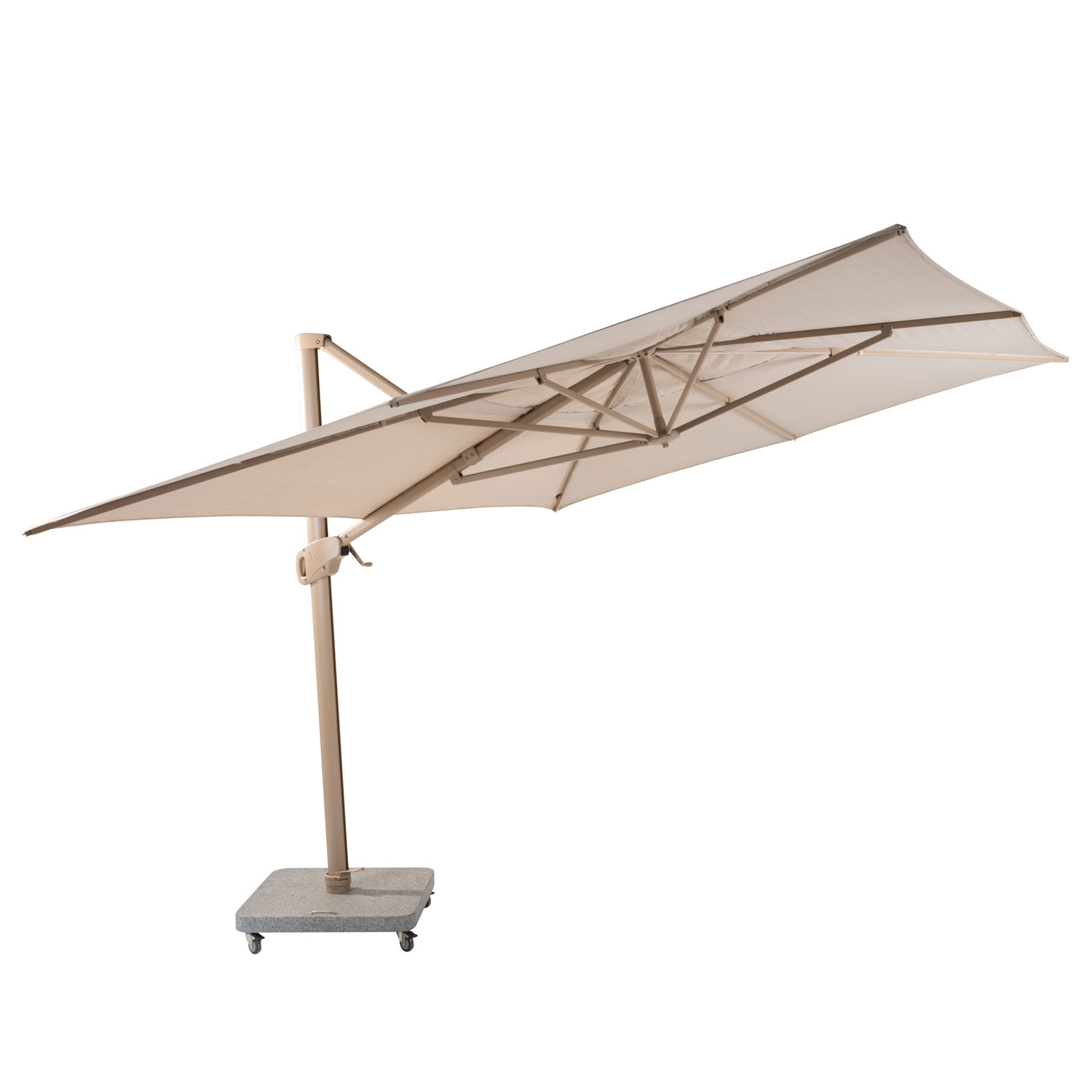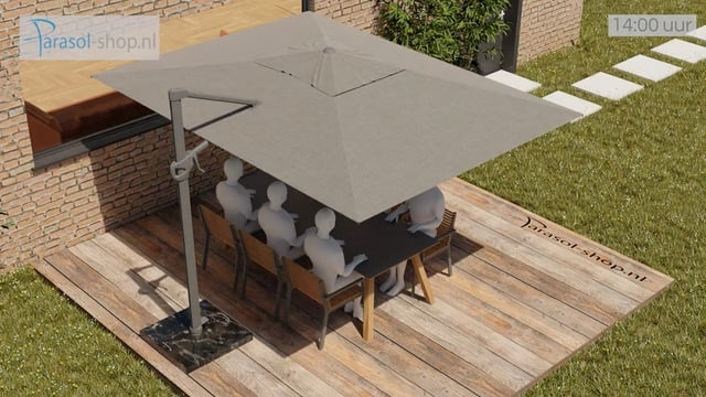 Een parasol die kan kantelen geeft extra schaduw. Soms kan de kantelfucntie van een parasol ook gebruikt worden om extra privacy in de tuin te creëren.