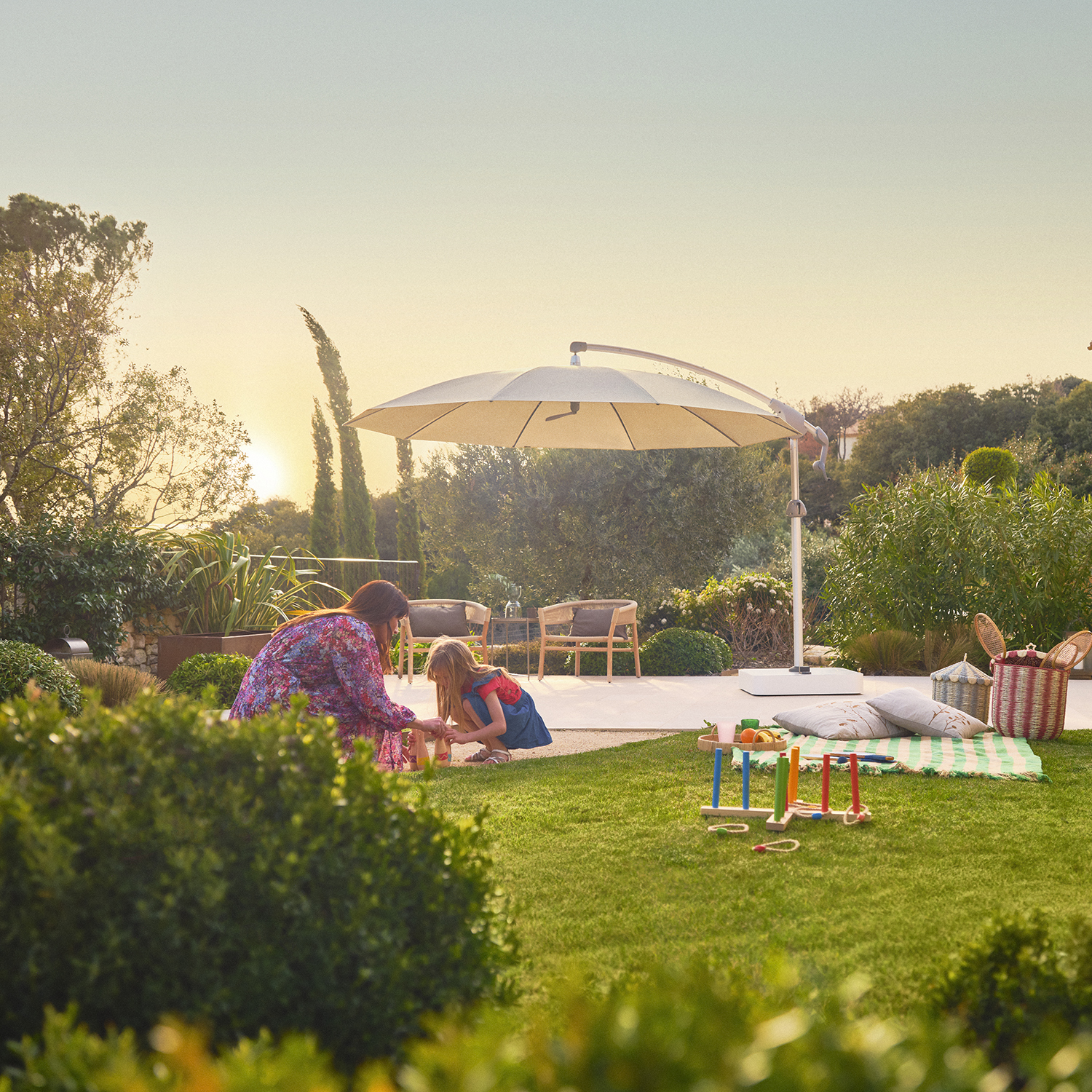 Een parasol die kan kantelen geeft extra schaduw. Soms kan de kantelfucntie van een parasol ook gebruikt worden om extra privacy in de tuin te creëren.
